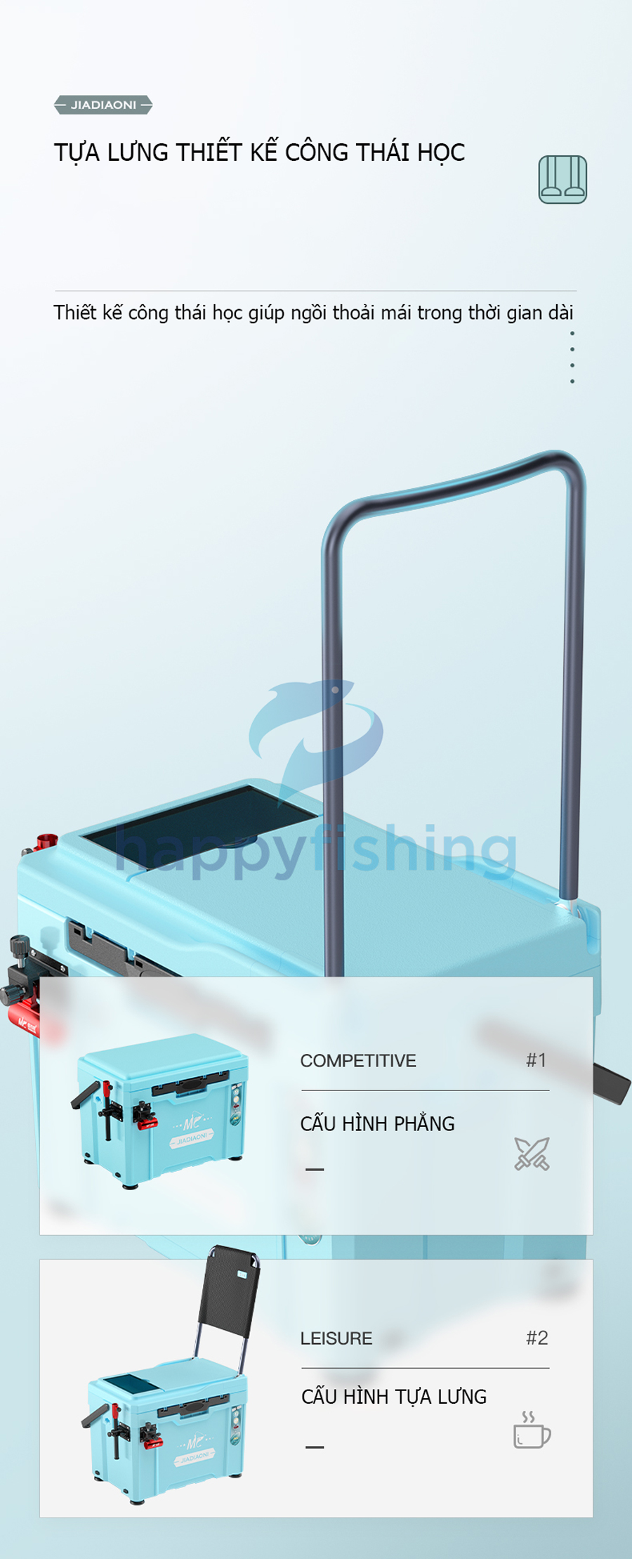 - Có thiết kế tựa lưng công thái học giúp cho người câu ngồi thoải mái trong thời gian dài và tiết kiệm được việc phải đem theo một chiếc ghế câu cá.