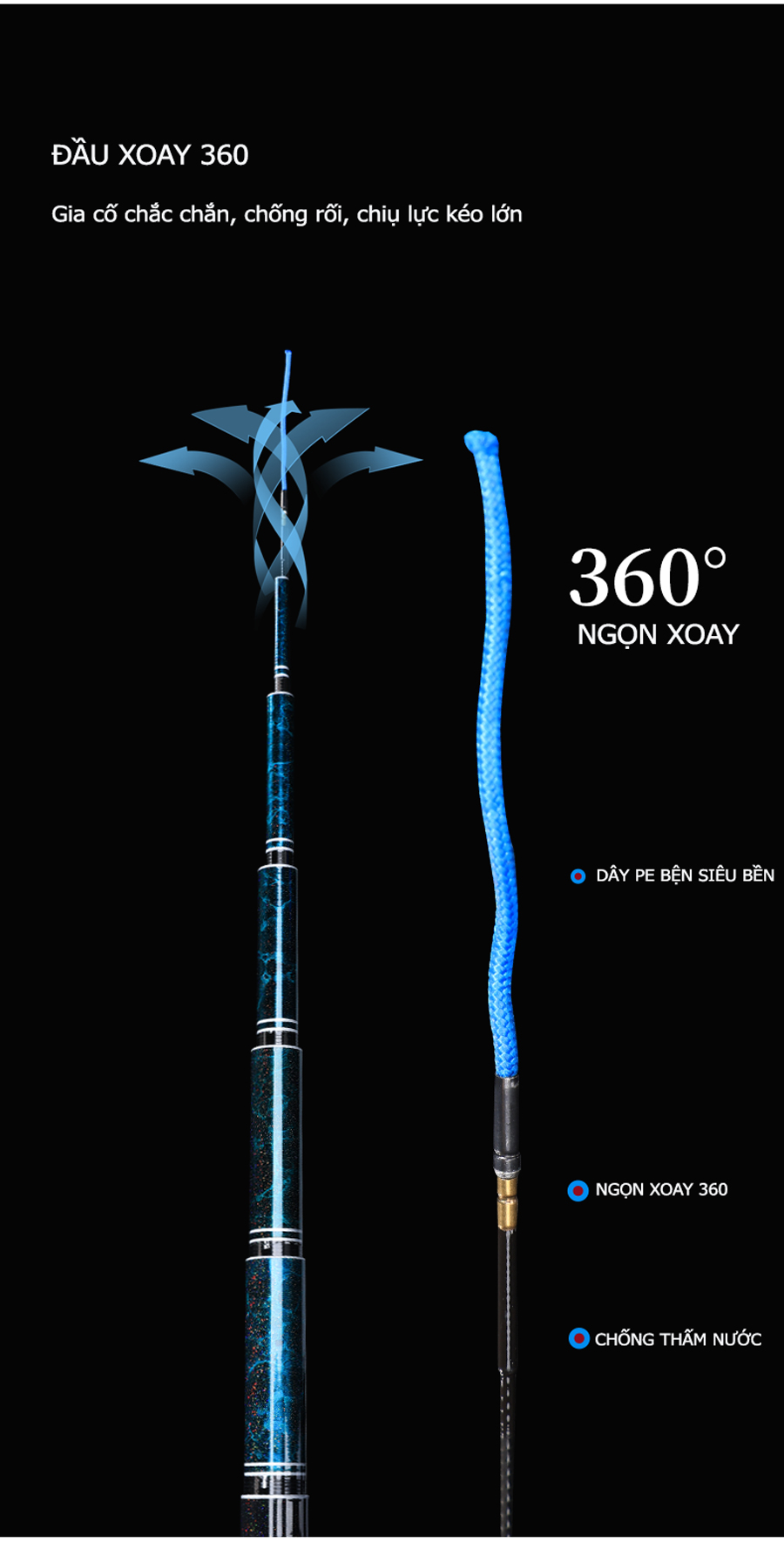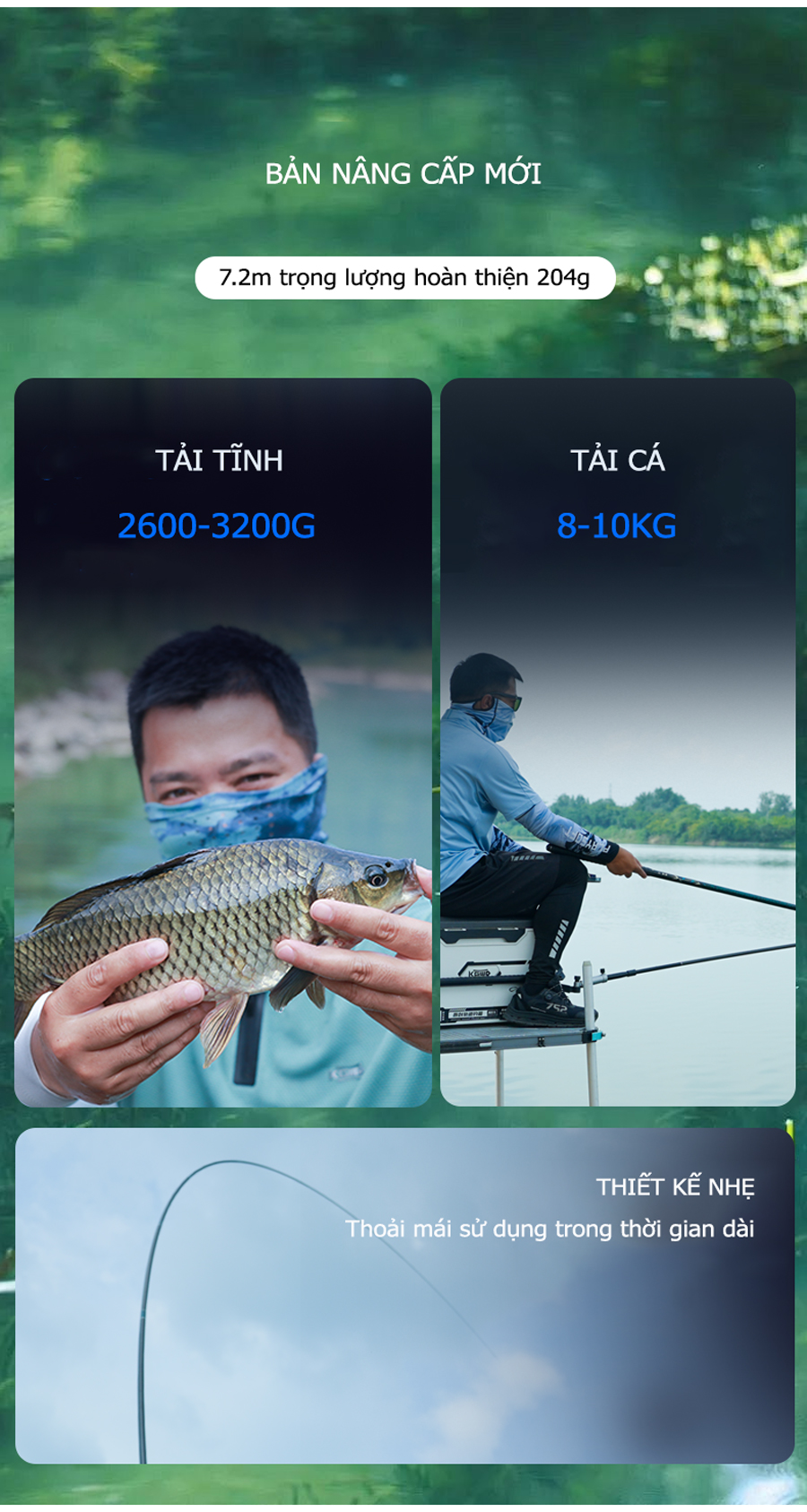 - Thiết kế siêu nhẹ, 7.2m nặng chỉ 204g, tải tĩnh 3200g