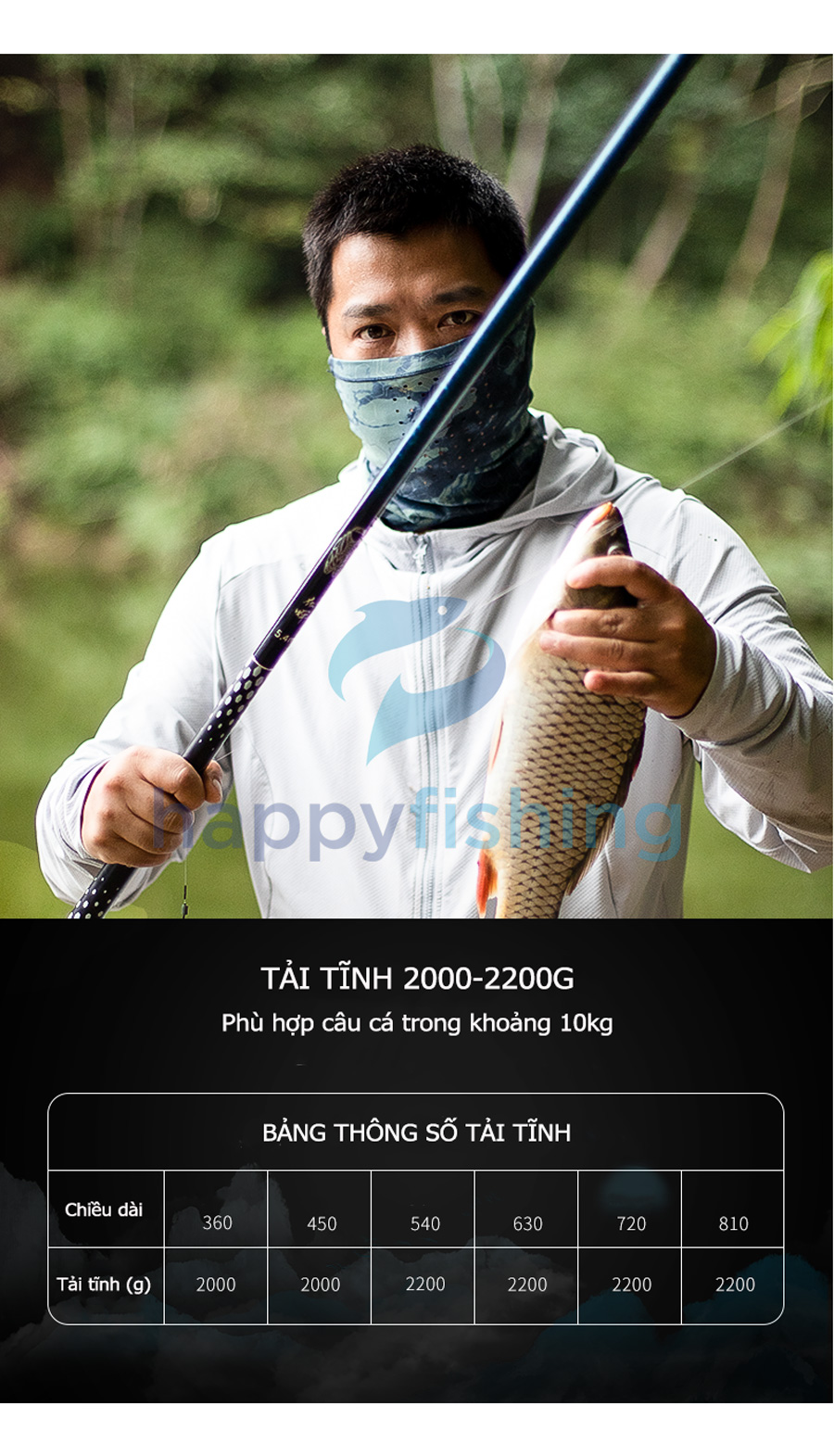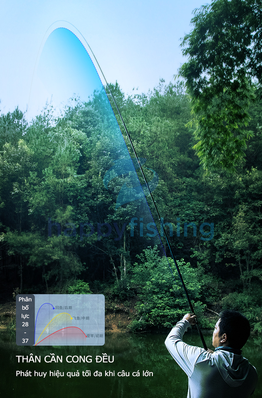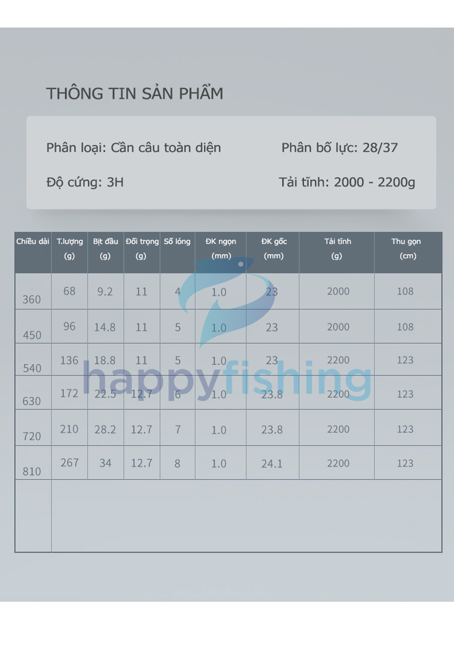 - Được thiết kế cho mục đích câu cá giải trí, câu cảm giá với độ phân bố lực 28/37 cùng độ cứng 3H