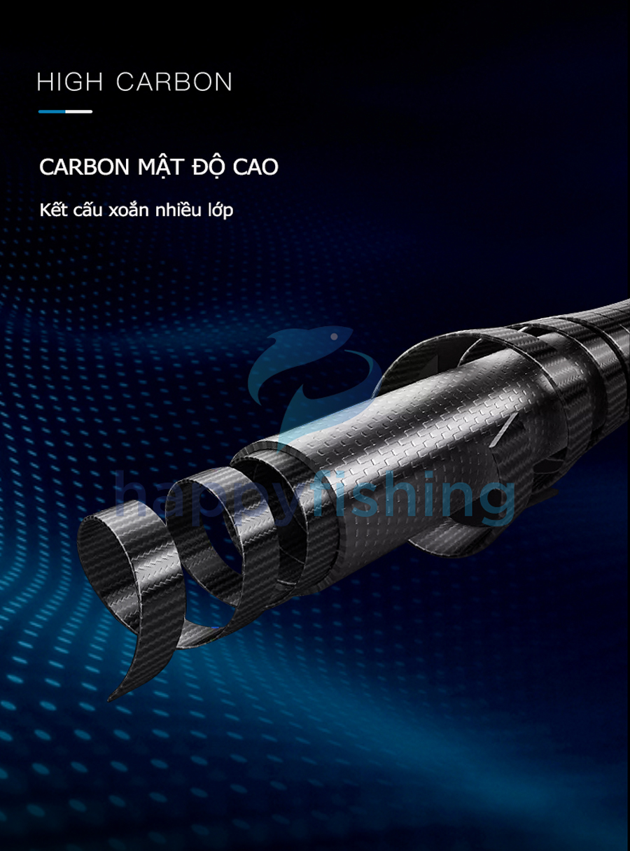 - Sử dụng Carbon Toray-Nhật Bản 40+46T cho trọng lượng nhẹ, khả năng tải tĩnh 2200g dễ dàng đối phó với cá lớn