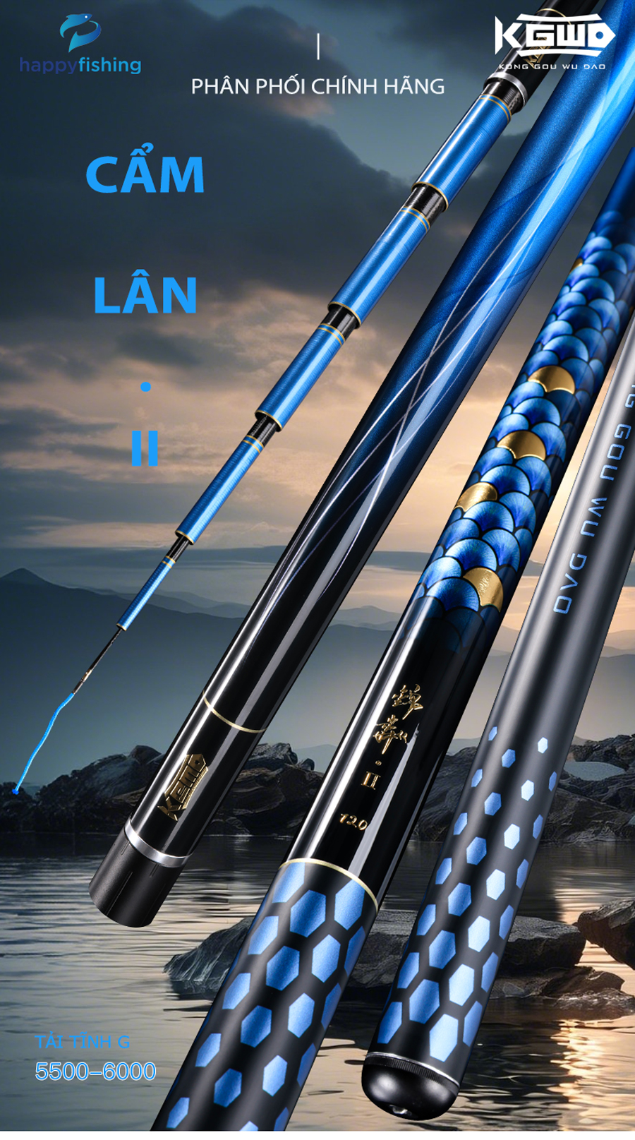 - Cần câu đài săn hàng Lão Ngư Cẩm Lân thế hệ 2 được thiết kế cho mục đích săn hàng, câu cá lớn với khả năng câu cá lên tới 30kg