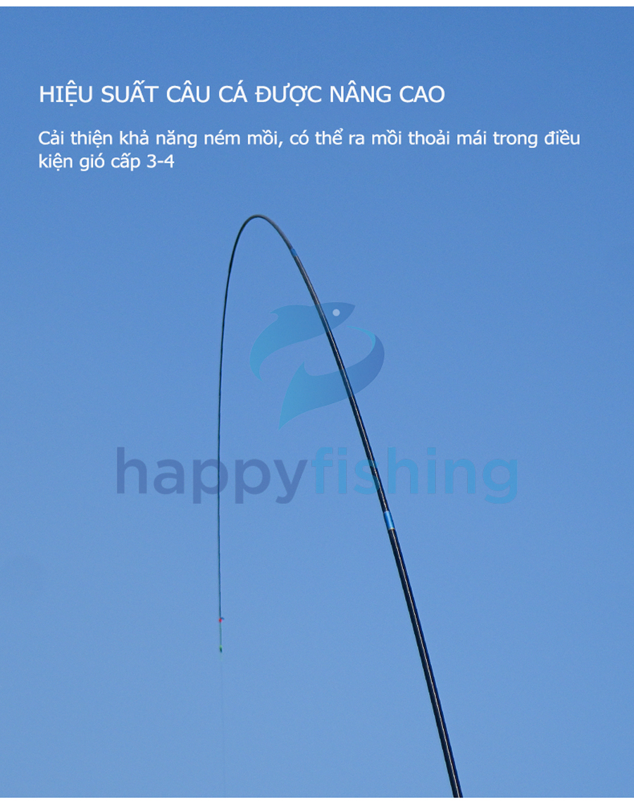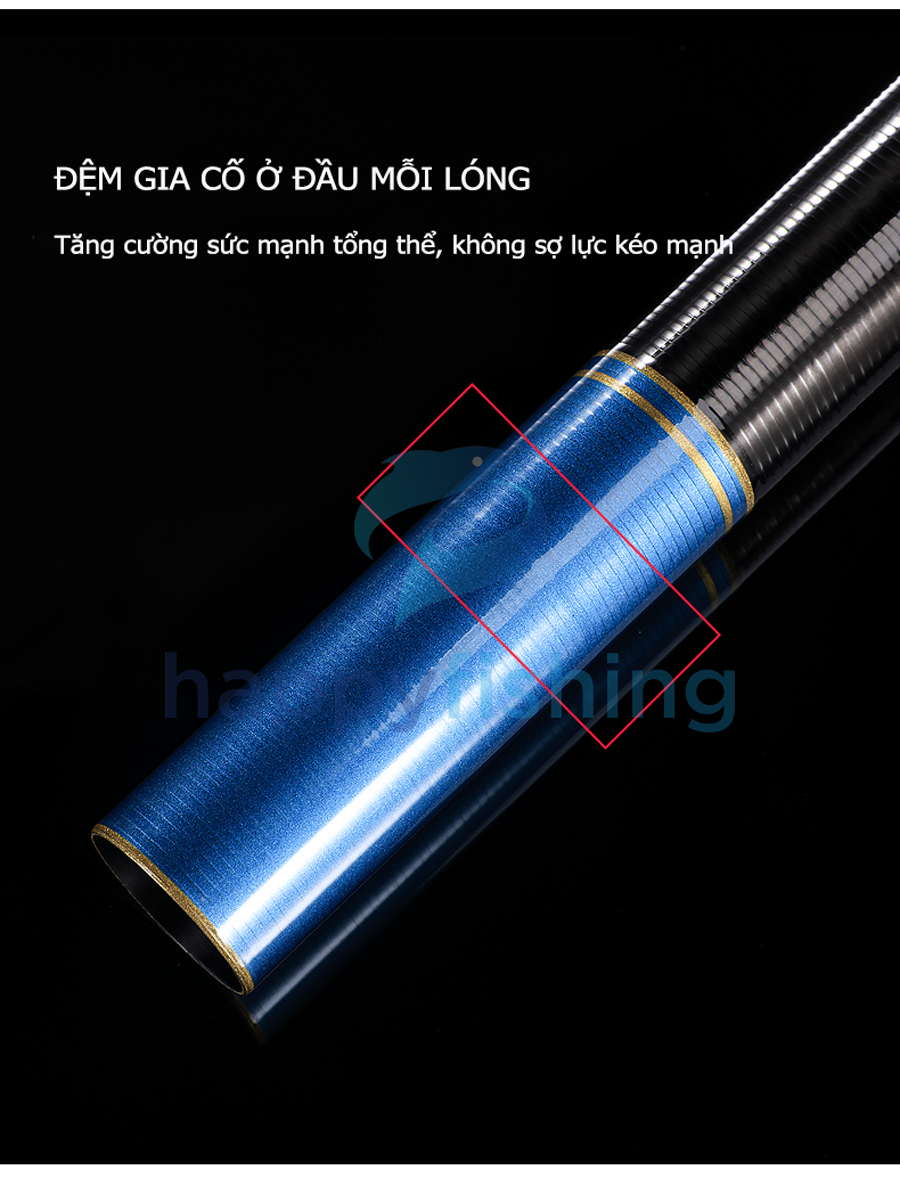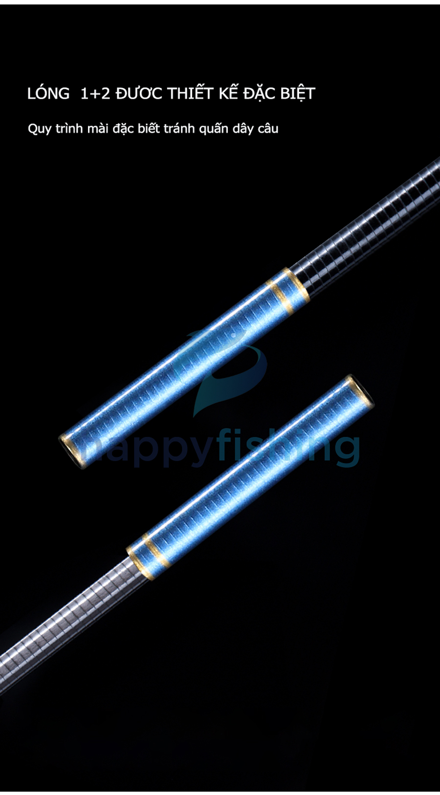 - Thân cần thiết kế nhỏ gọn, lóng dày và đều, trọng tâm cần gần tay cầm hơn giúp cầm nắm thoải mái hơn, dễ ném mồi hơn và sử dụng thoải mái trong thời gian dài