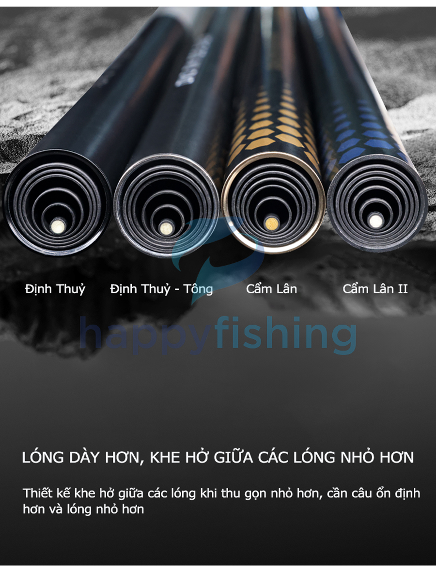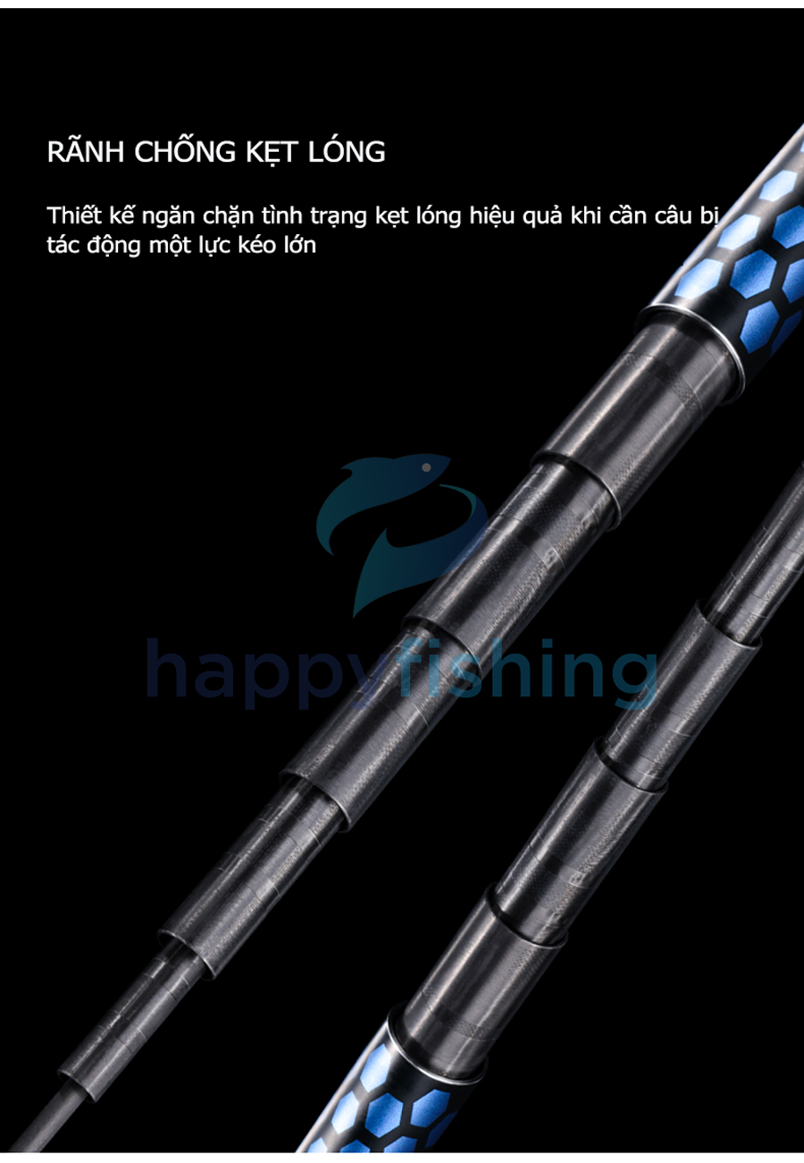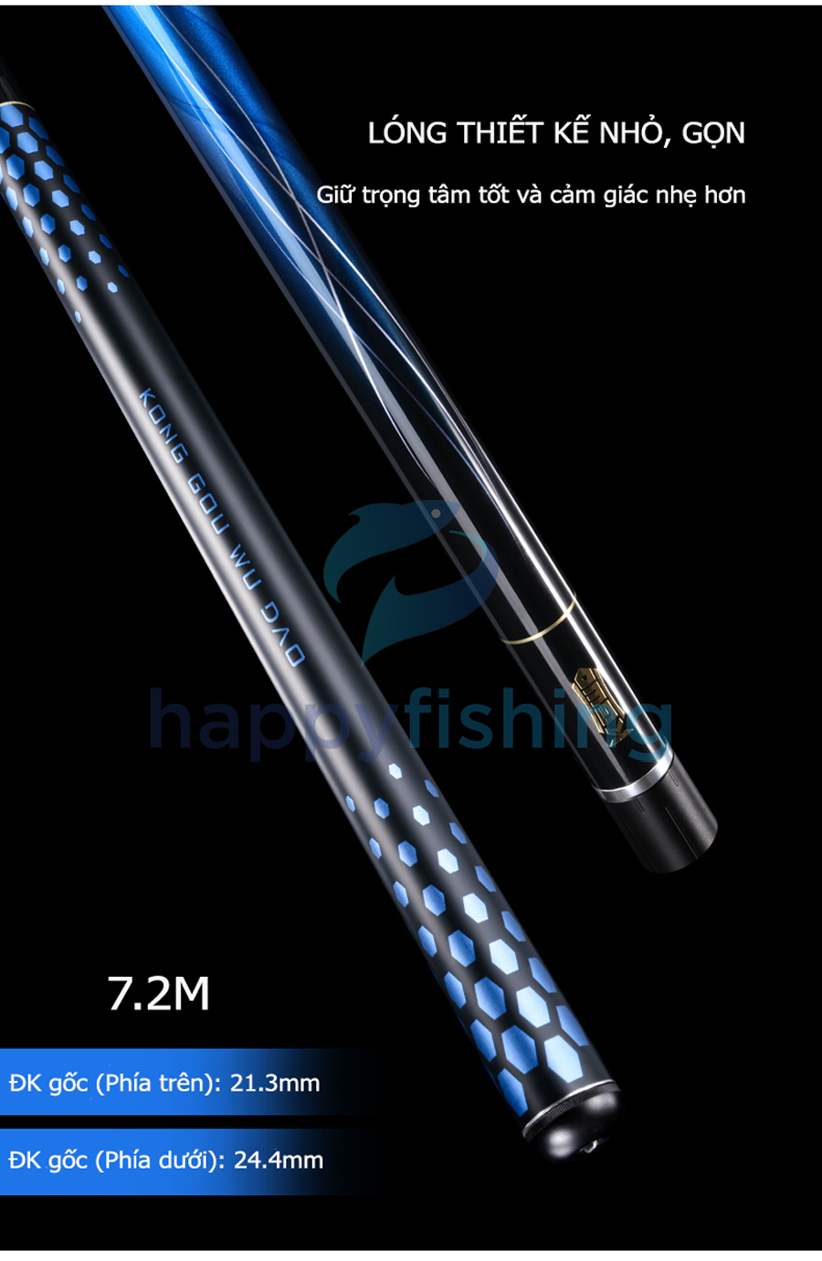 - Thân cần thiết kế nhỏ gọn, lóng dày và đều, trọng tâm cần gần tay cầm hơn giúp cầm nắm thoải mái hơn, dễ ném mồi hơn và sử dụng thoải mái trong thời gian dài