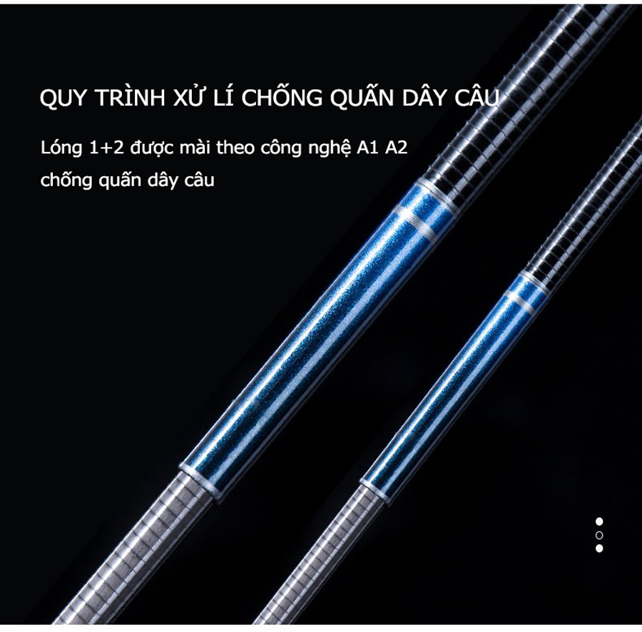 - Lóng ngọn và lóng 2 sử dụng công nghệ mài đặc biệt A1A2 giúp cho dây câu không bị quấn vào cần trong quá trình sử dụng