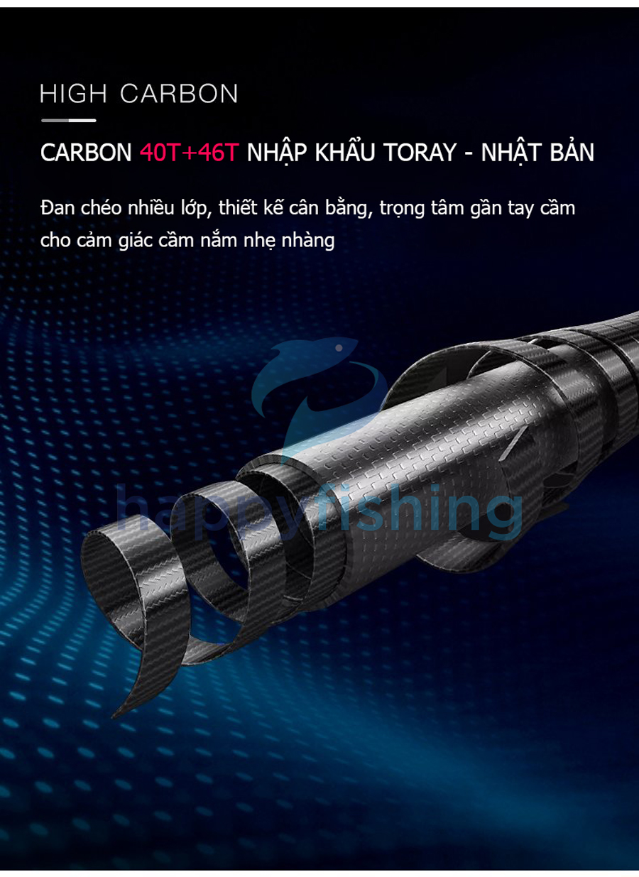 - Sử dụng Carbon 40T+46T Toray- Nhật Bản cùng với những công nghệ mới nhất tạo ra sản phẩm tuyệt vời: Siêu nhẹ, độ nảy cao và khả năng phản hồi cá nhanh