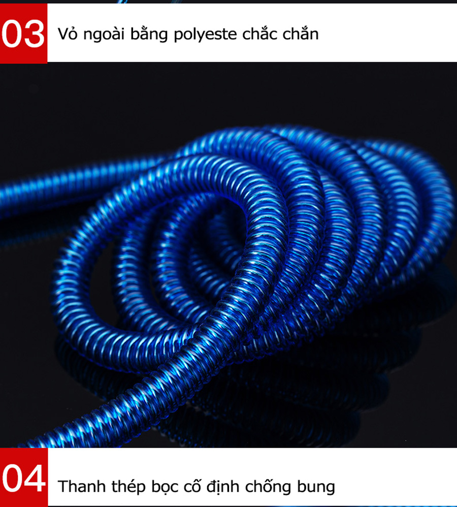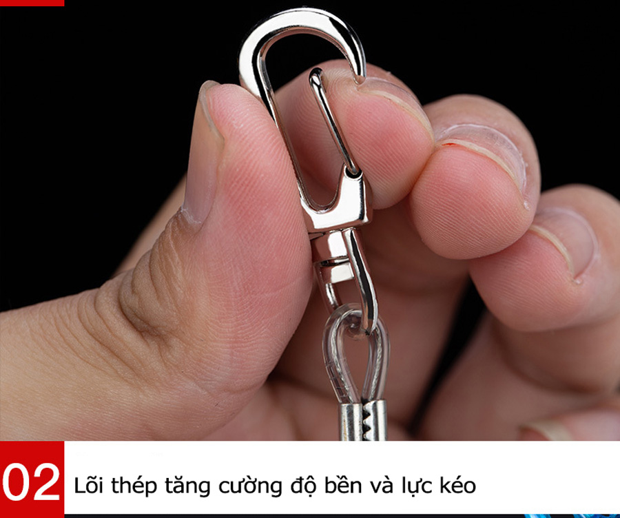 - Cấu tạo từ móc kim loại không ghỉ và phần lõi thép 07 sợi chắc chắn, cho khả năng chịu lực tốt và sử dụng lâu dài