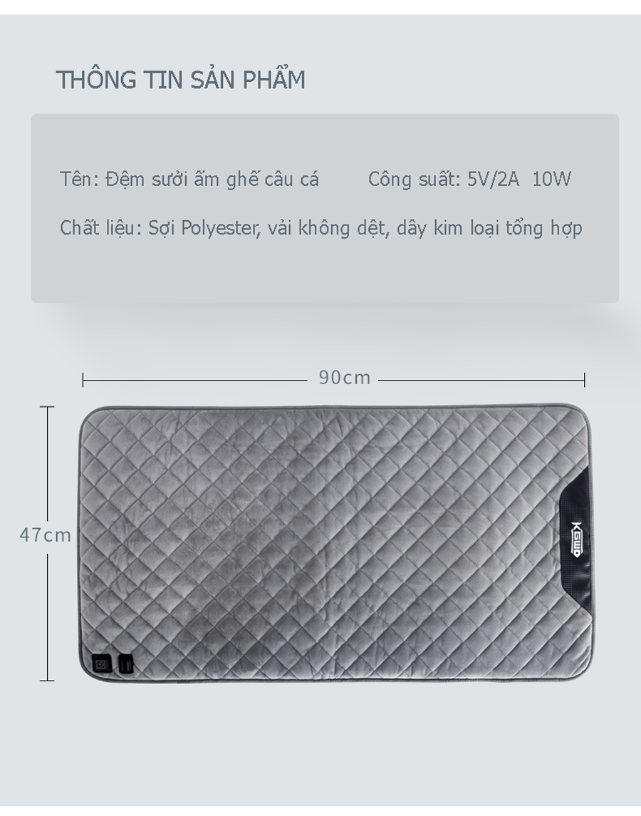 - Tên sản phẩm: Đệm ghế câu cá sưởi ấm