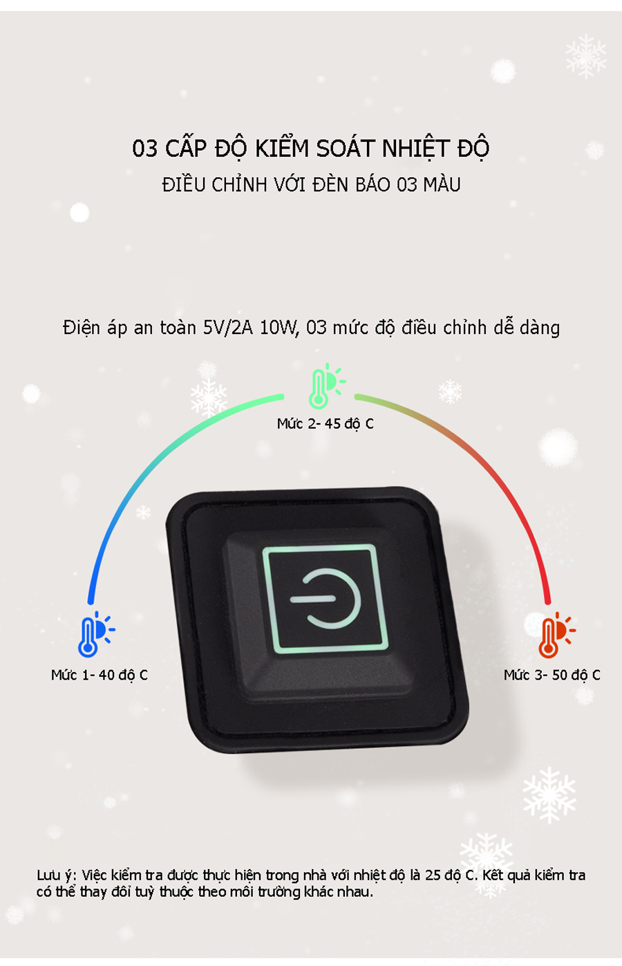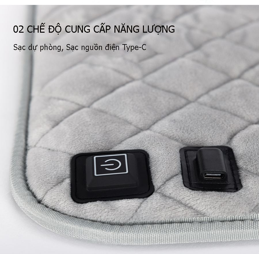 - Chức năng sưởi ấm với 03 cấp độ, điện áp đầu ra an toàn 5V/2A 10W mang đến sự ấm áp và thoải mái cho cần thủ