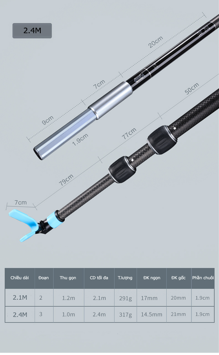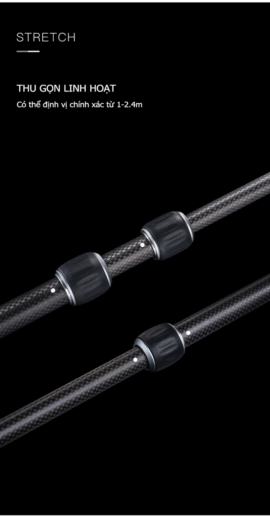 - Cấu tạo từ các ống Carbon 3K cứng, nhẹ, khoẻ cho khả năng chịu tải cao