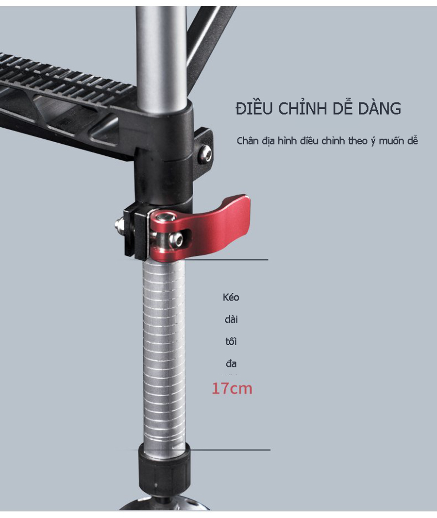 - Dễ dàng điều chỉnh chiều cao của ghế theo ý muốn với chỉ một thao thác duy nhất. Phù hợp với hầu hết mọi địa hình
