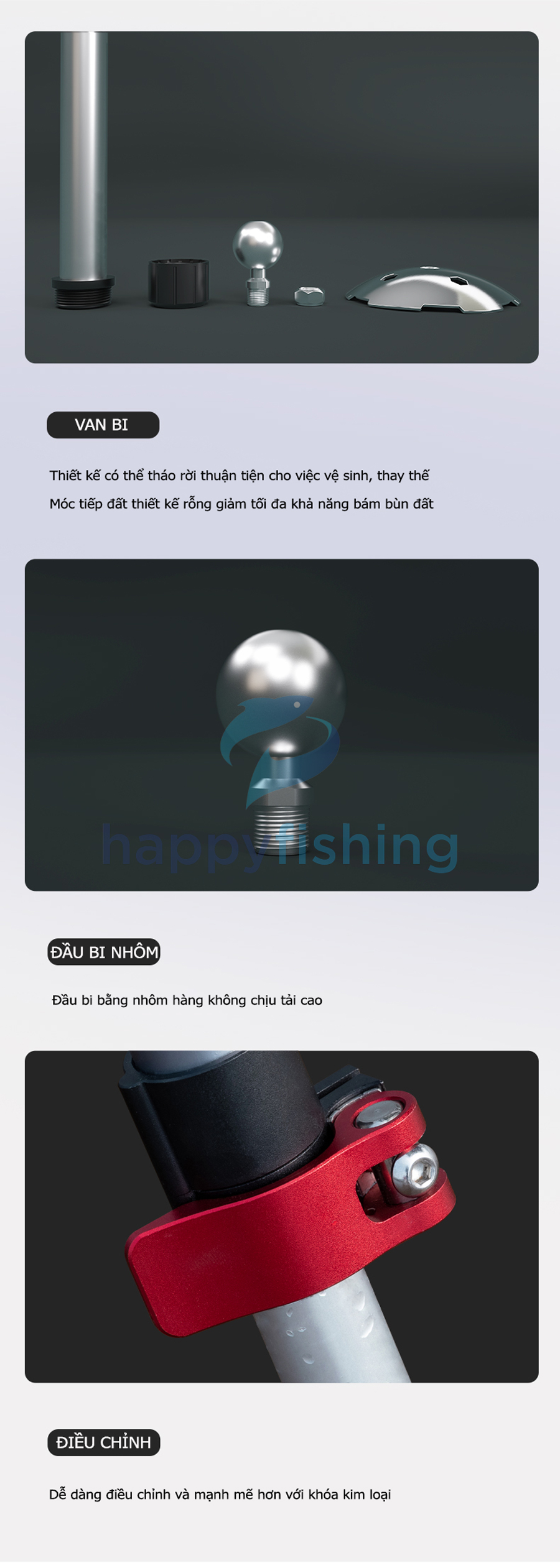 - Chân địa hình được thiết kế mới với nút điều chỉnh kim loại mạnh mẽ và bền bỉ hơn