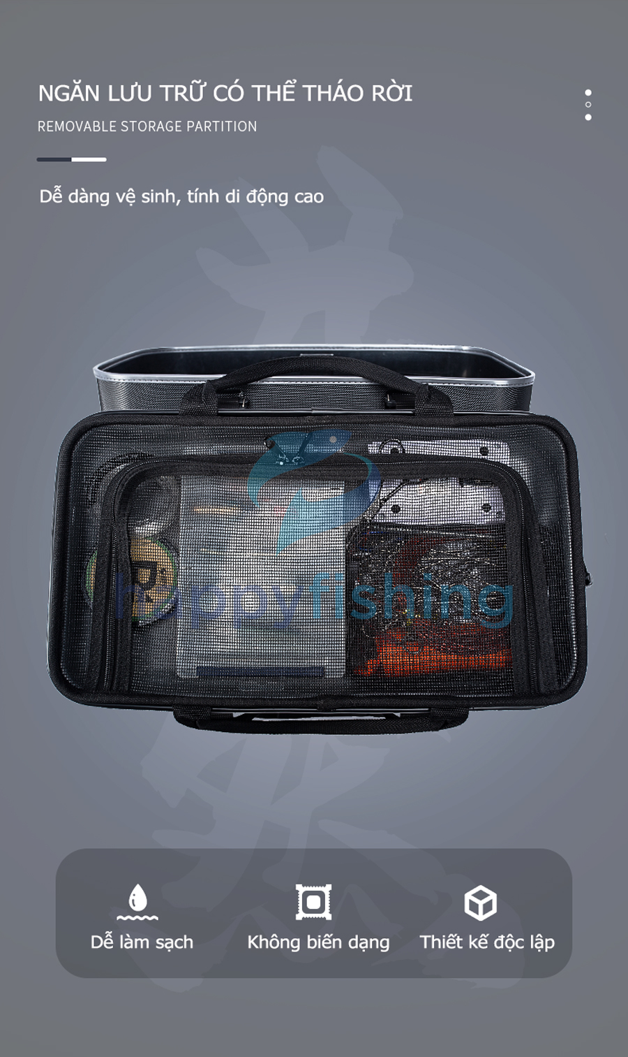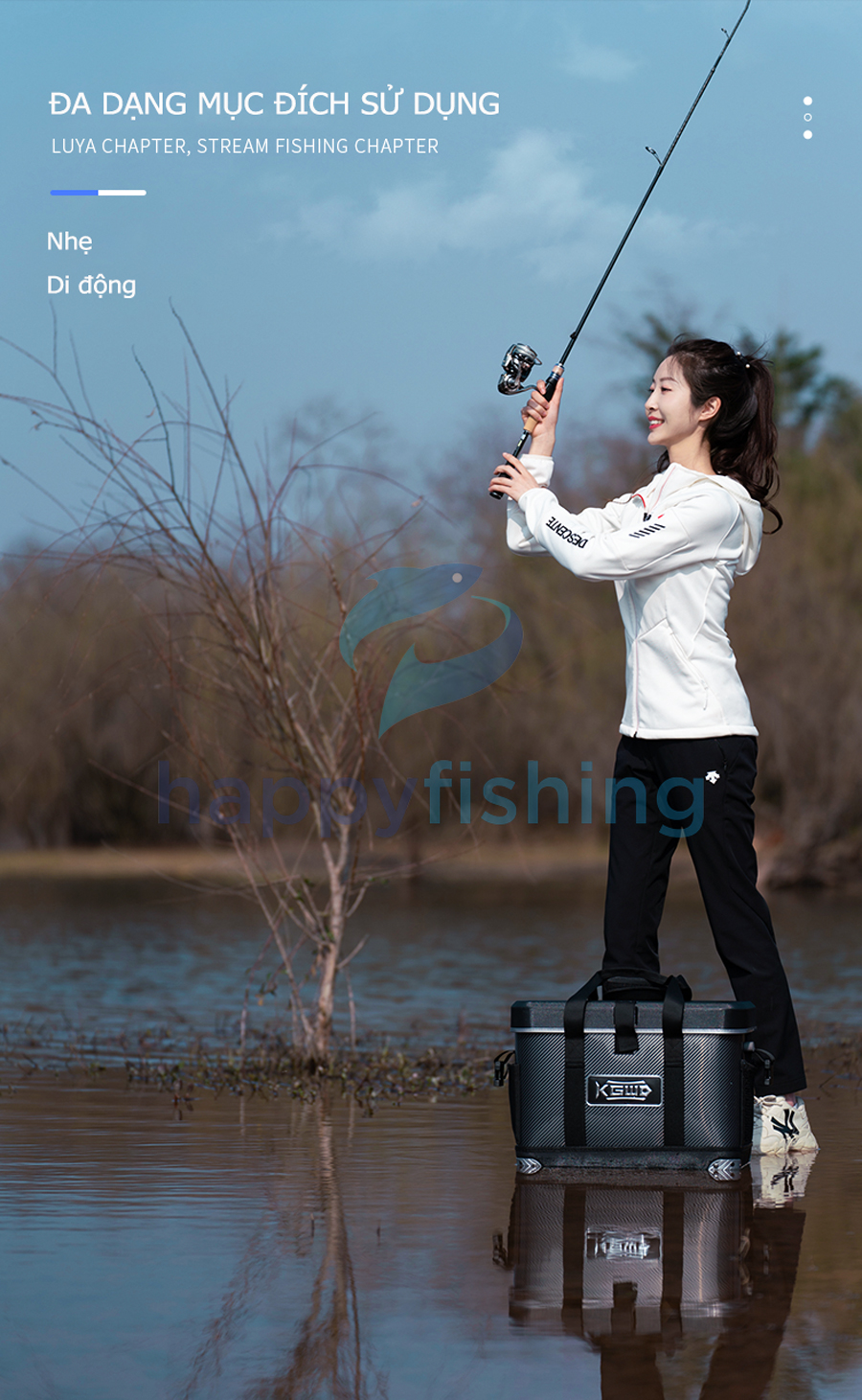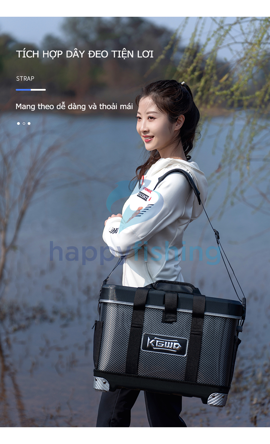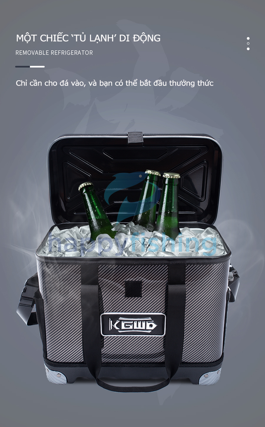 - Hộp câu cá đa năng Lão Ngư 2023 với thiết kế mới cùng nhiều tiện ích: Có thể sử dụng như thùng câu dài, hộp câu lure, dùng để đựng cá sống, dùng đựng đồ ăn nhẹ và nước uống và nhiều cách sử dụng khác