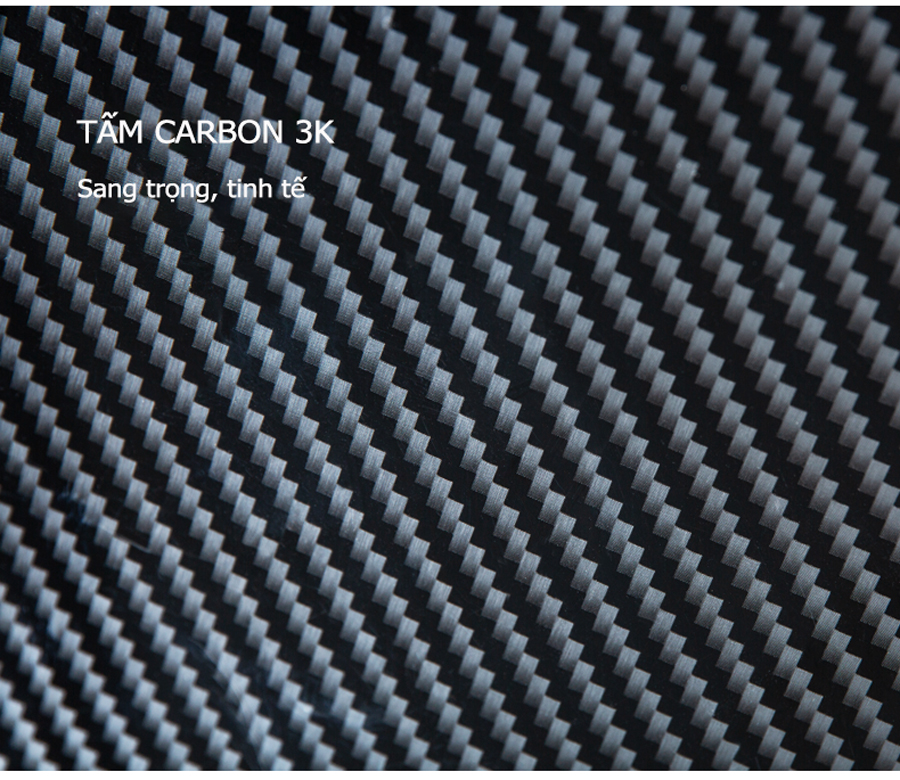 - Thiết kế đúc nguyên khối cứng cáp, bền, mặt ngoài là lớp Carbon 3K sang trọng và tinh tế, để thiết kế cứng, chống xước và chống mài mòn