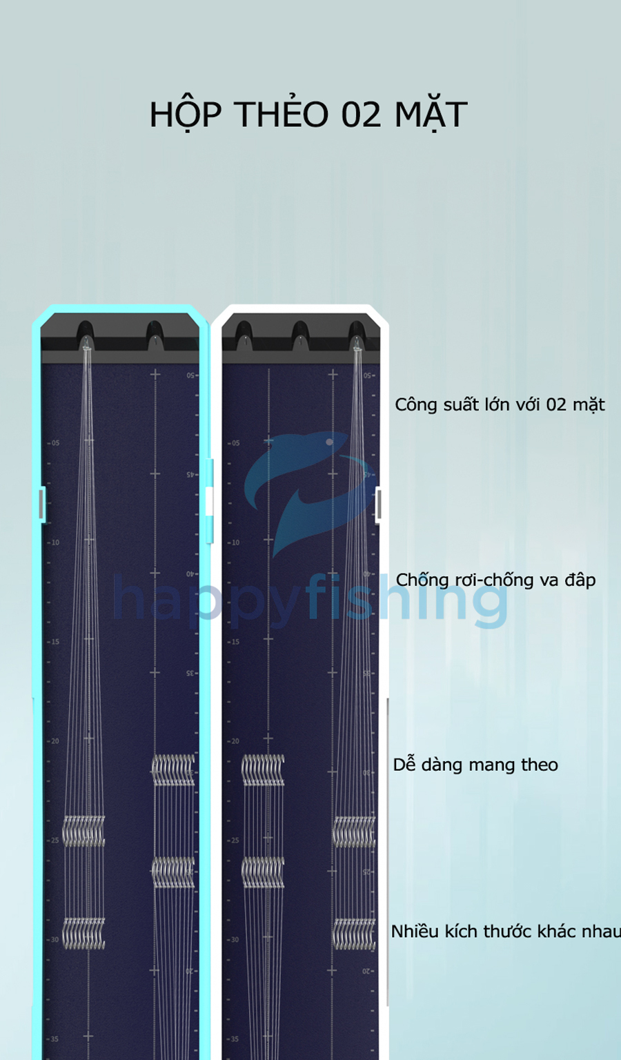 - Sức chứa lớn với 02 mặt, có thể chứa tôi đa 160 cặp thẻo câu, đảm bảo cho các cần thủ thoải mái có thể sử dụng