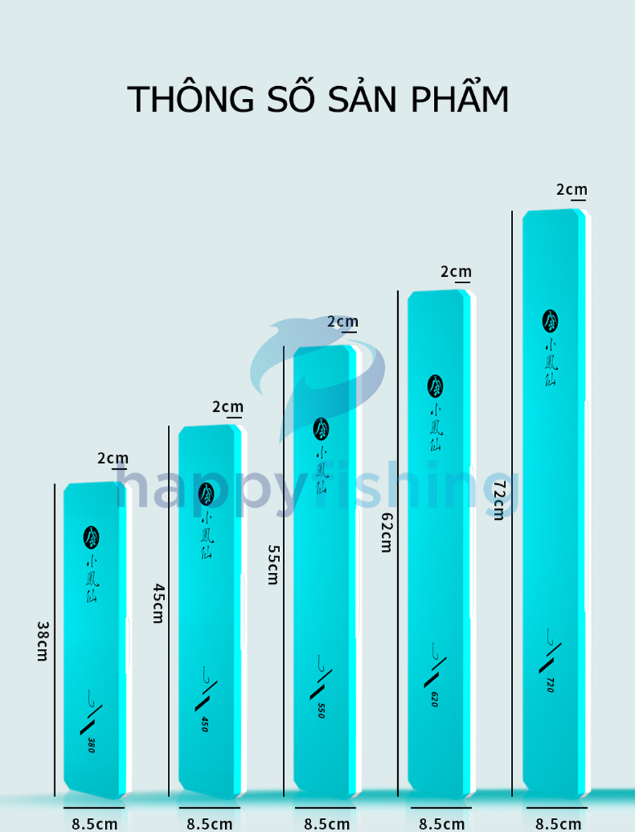 - Kích thước đa dạng đáp ứng đầy đủ nhu cầu của cần thủ