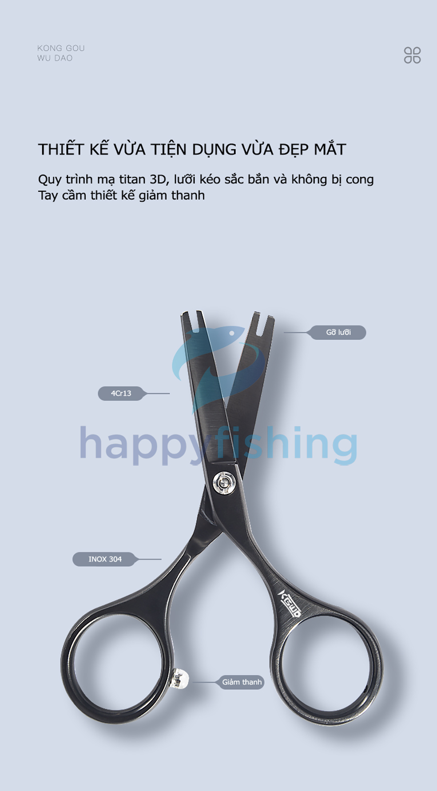 - Kéo câu cá Lão Ngư được thiết kế cho nhiều mục đích sử dụng khác nhau: Cắt dây câu, cắt chì, gỡ lưỡi...