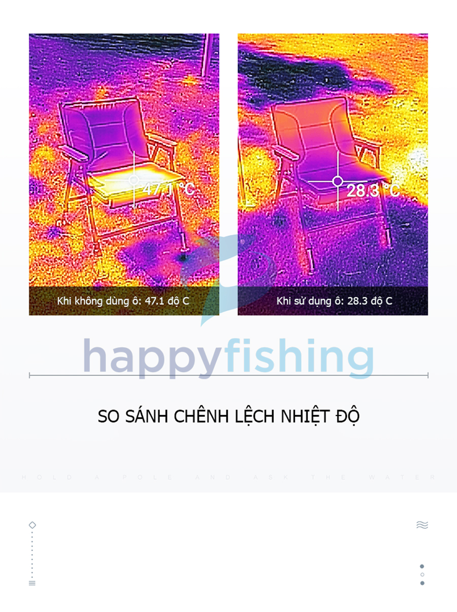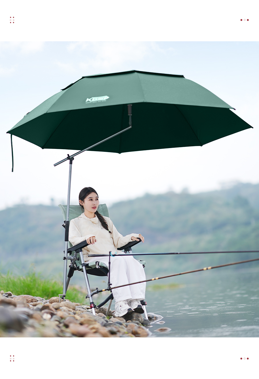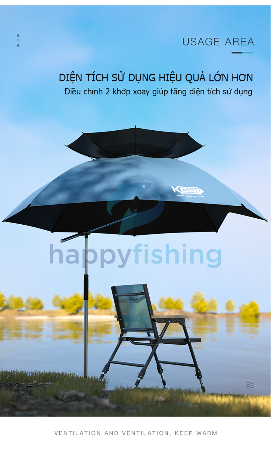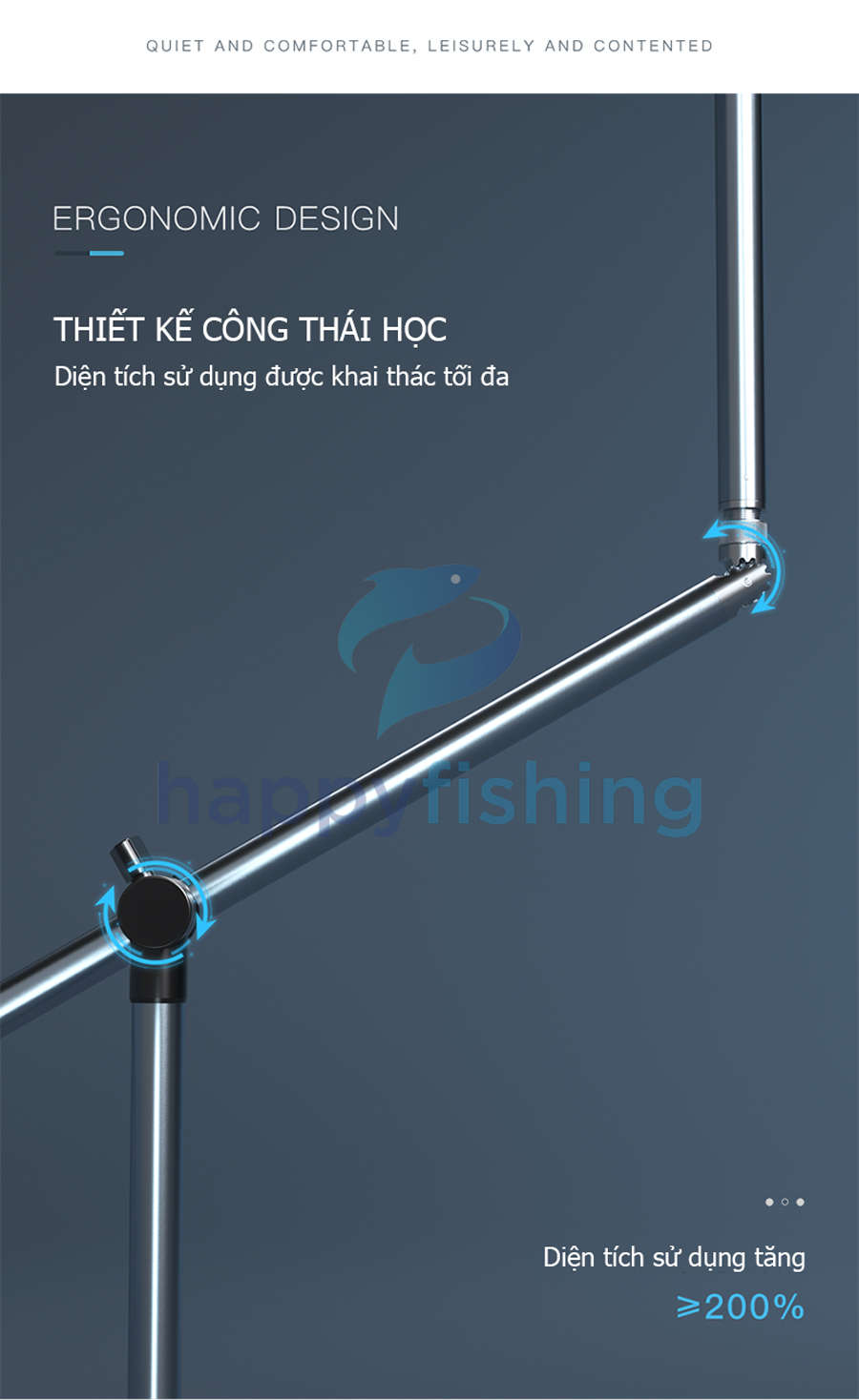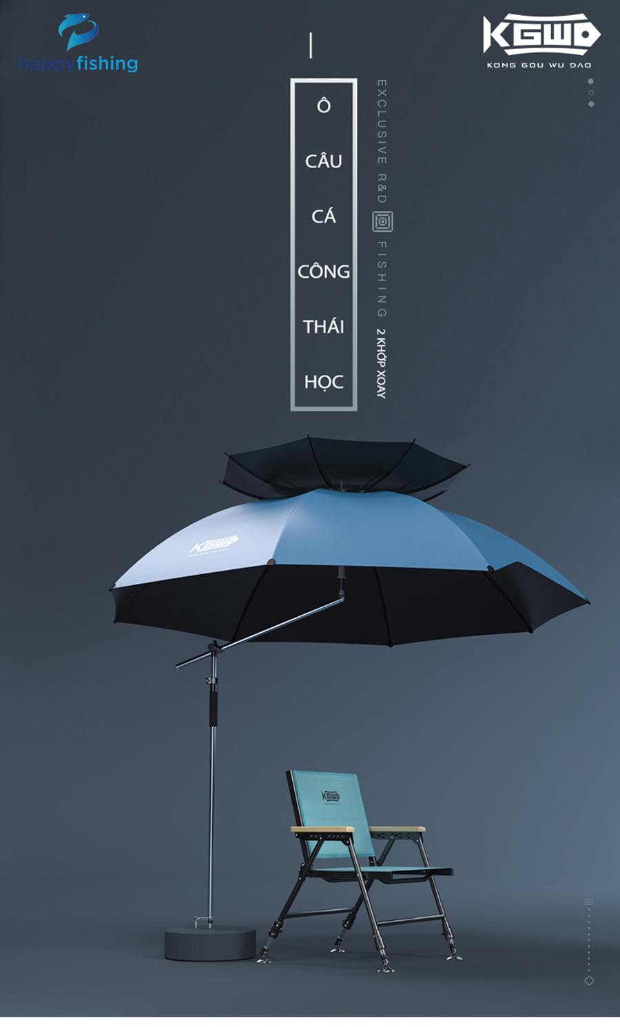 - Thiết kế công thái học hướng đến người sử dụng với phần chân xoay 360 độ kết hợp với khớp xoay độc đáo thứ 2 trên thân giúp tăng diện tích sử dụng lên 200% so với ô câu cá truyền thống