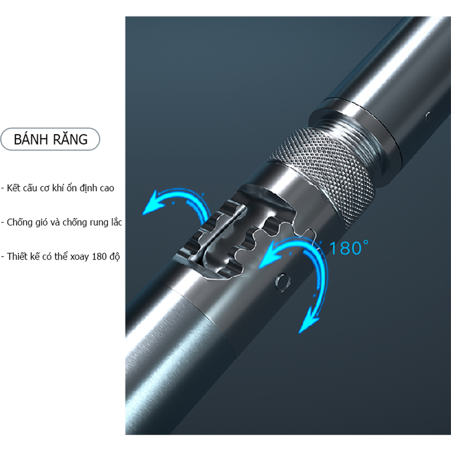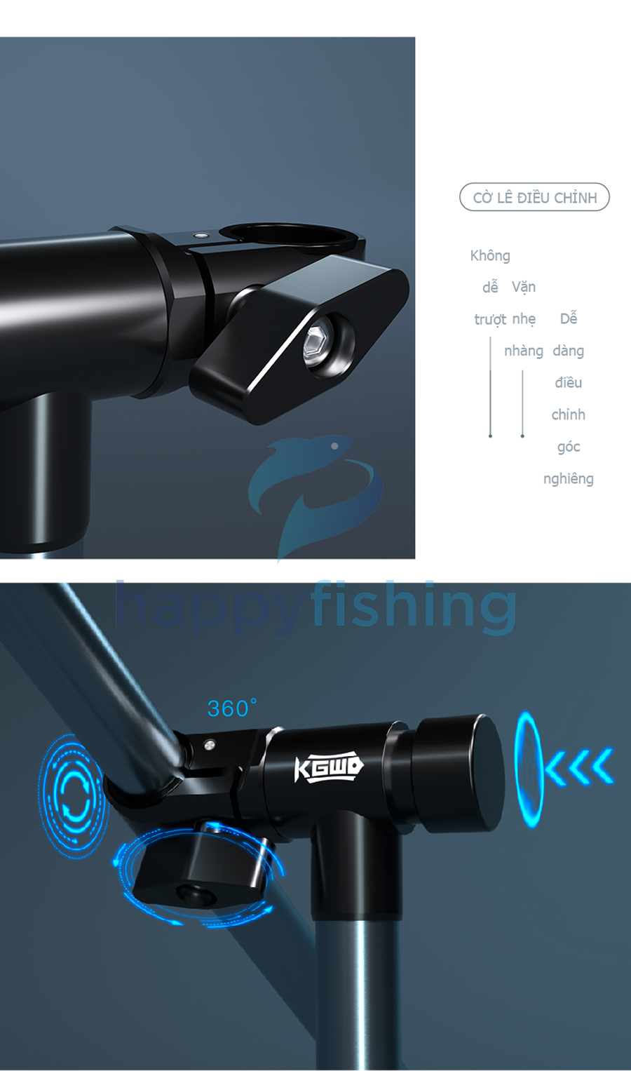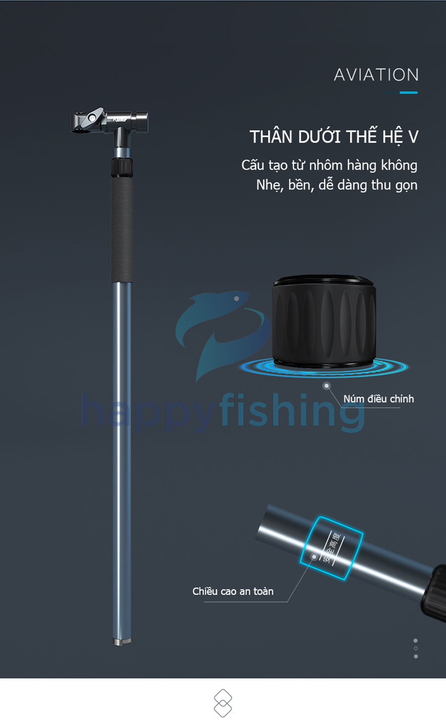 - Phần chân xoay 360 cấu tạo từ vật liệu nhôm hàng không, siêu nhẹ và siêu chắc khỏe giúp đơn giản hóa mỗi chuyến đi câu của cần thủ