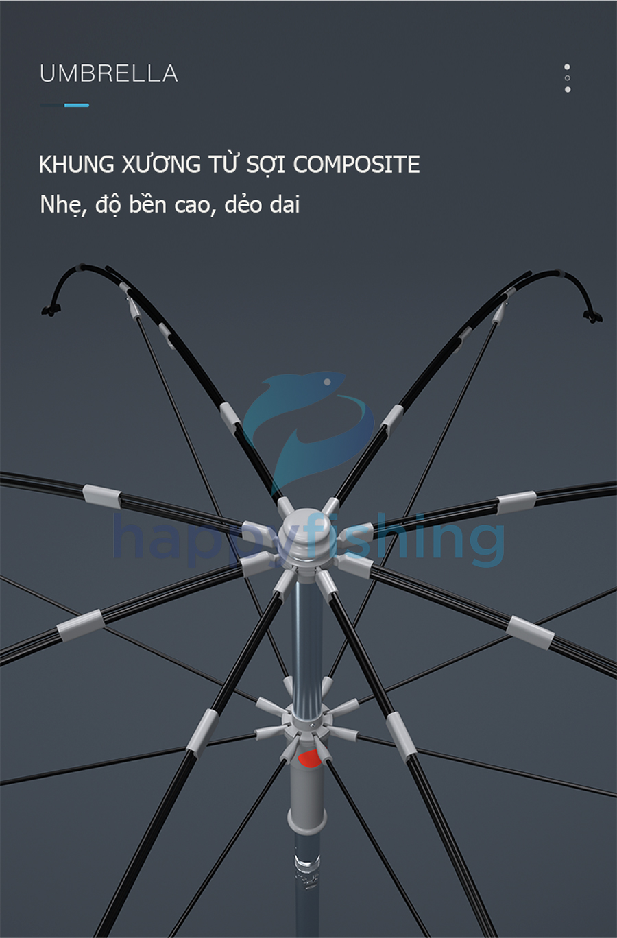 - Khung xương cấu tạo từ vật liệu composite dẻo dai và bền bỉ, chịu được tác động khi gặp gió lớn