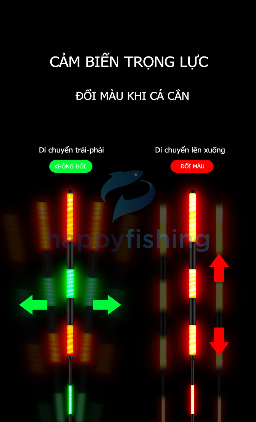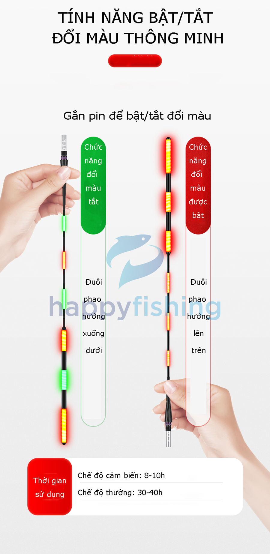 - Chức năng đổi màu khi cá cắn, chế độ bật tắt thông mình giúp ích rất nhiều cho cần thủ trong quá trình câu săn hàng