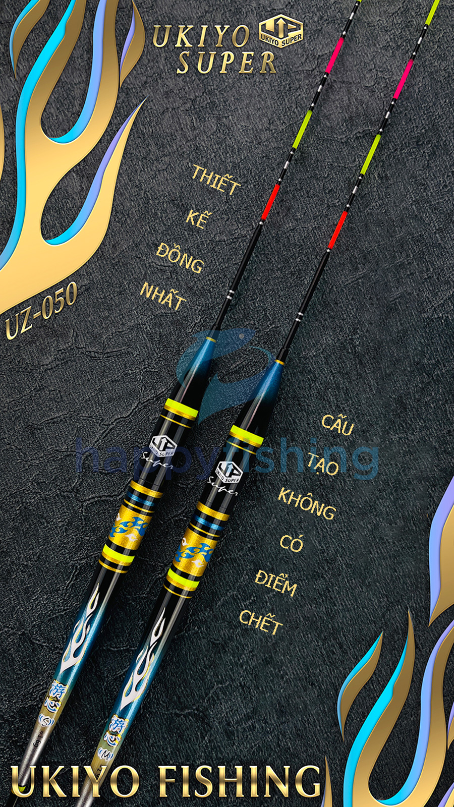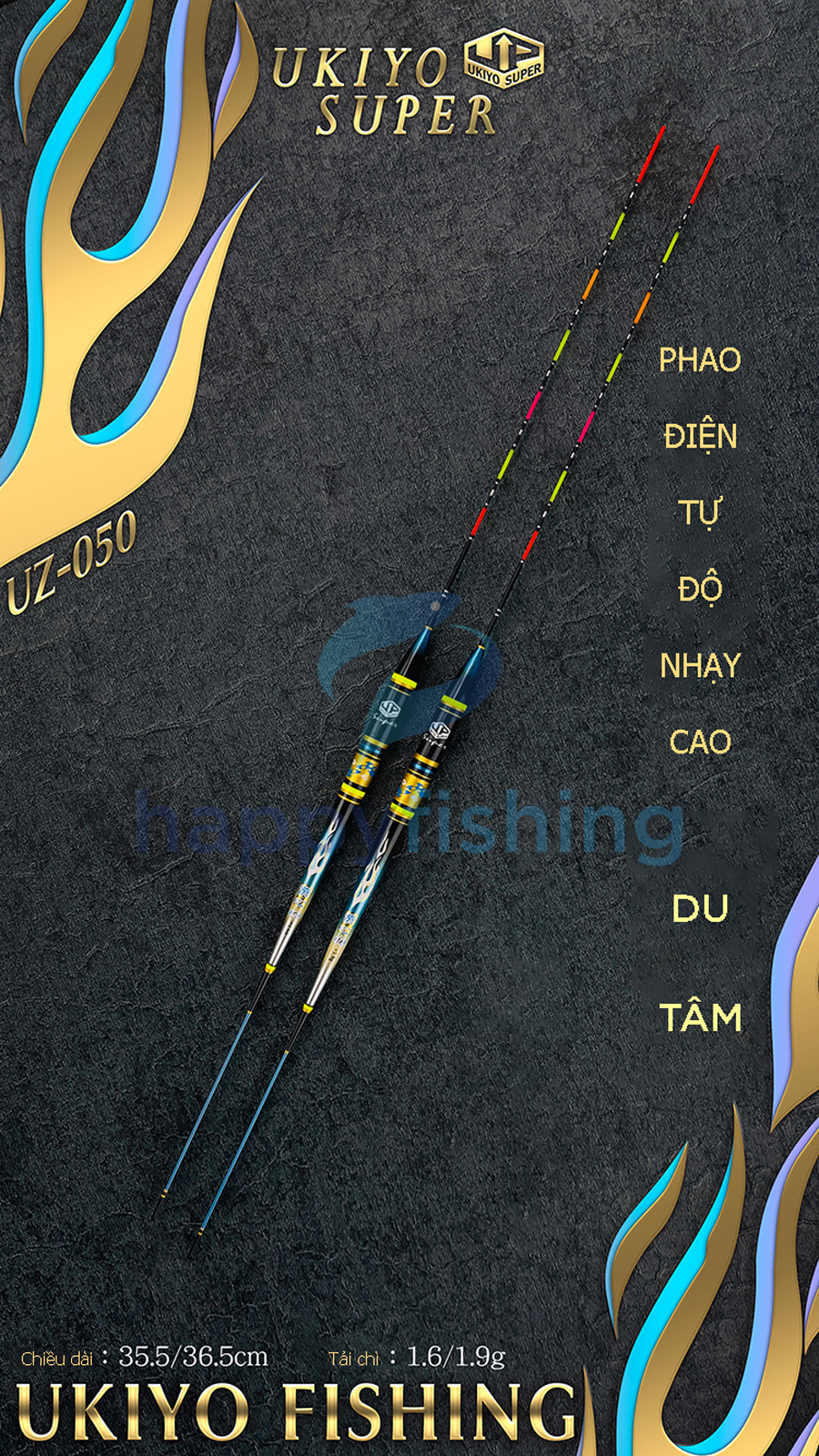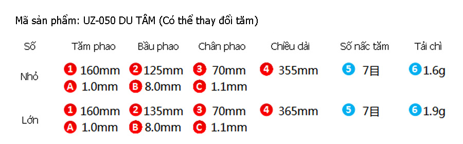 - Hình dàng thân phao dài, chân ngắn giúp lật nhanh trong nước, tăm phao với 07 nấc sáng với chiều dài 35.5-36.5cm