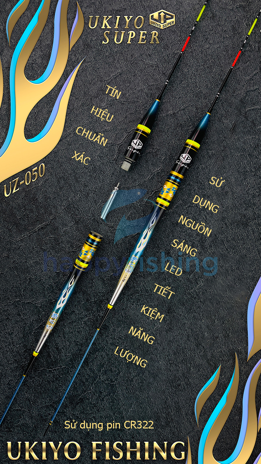 - Chất liệu cỏ lau (sậy), sử dụng pin CR322, tải chì khoảng 1.6/1.9g sau khi gắn pin. Trọng lượng nhẹ, độ nhạy cao và độ nổi cao là những đặc điểm chính của sản phẩm này