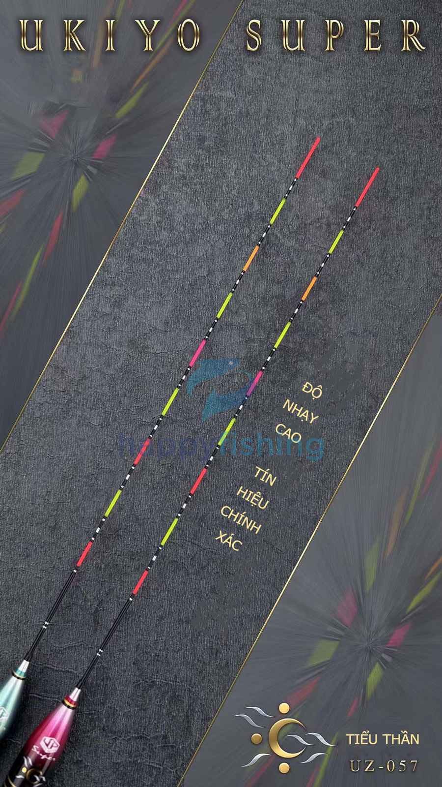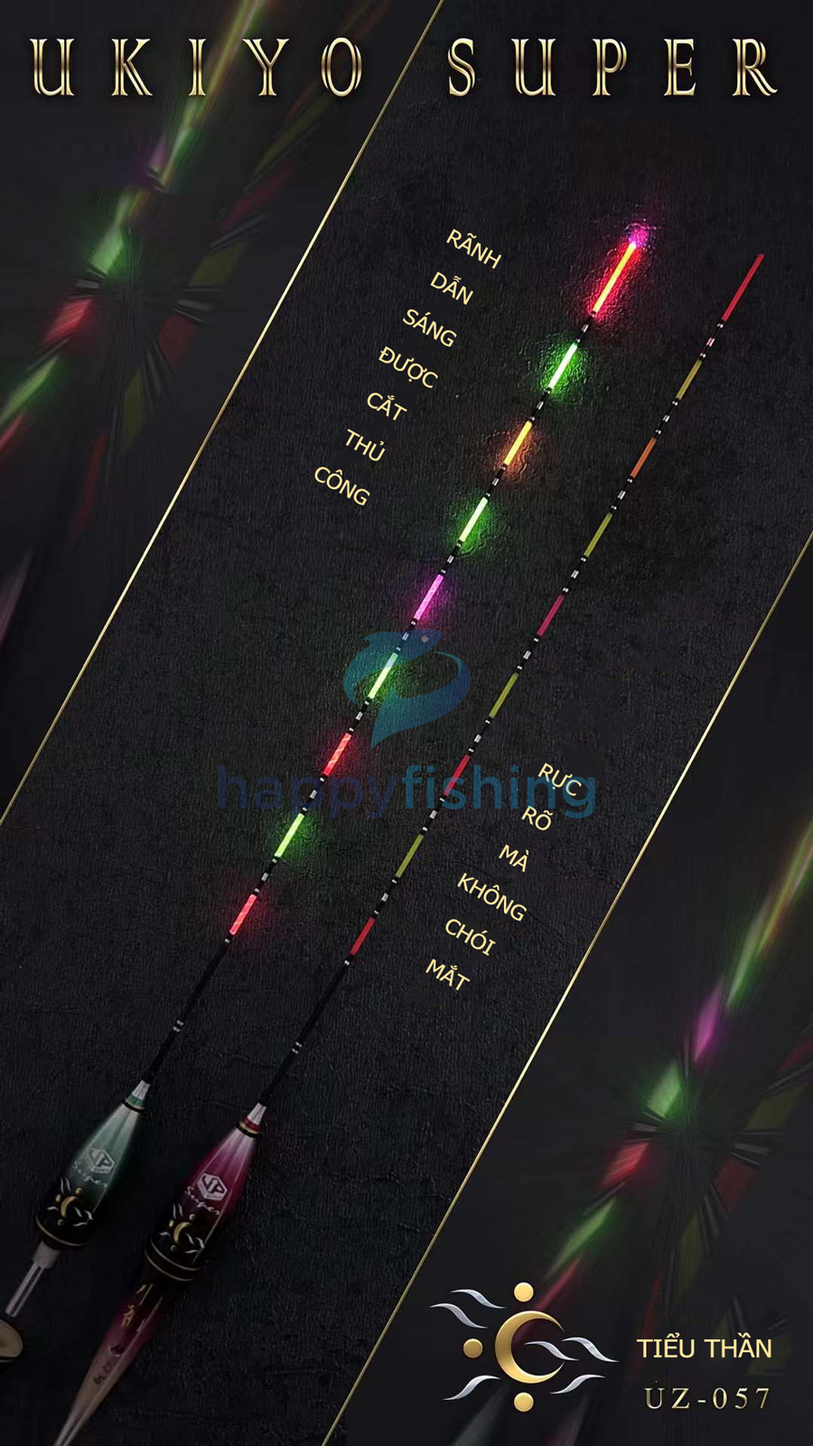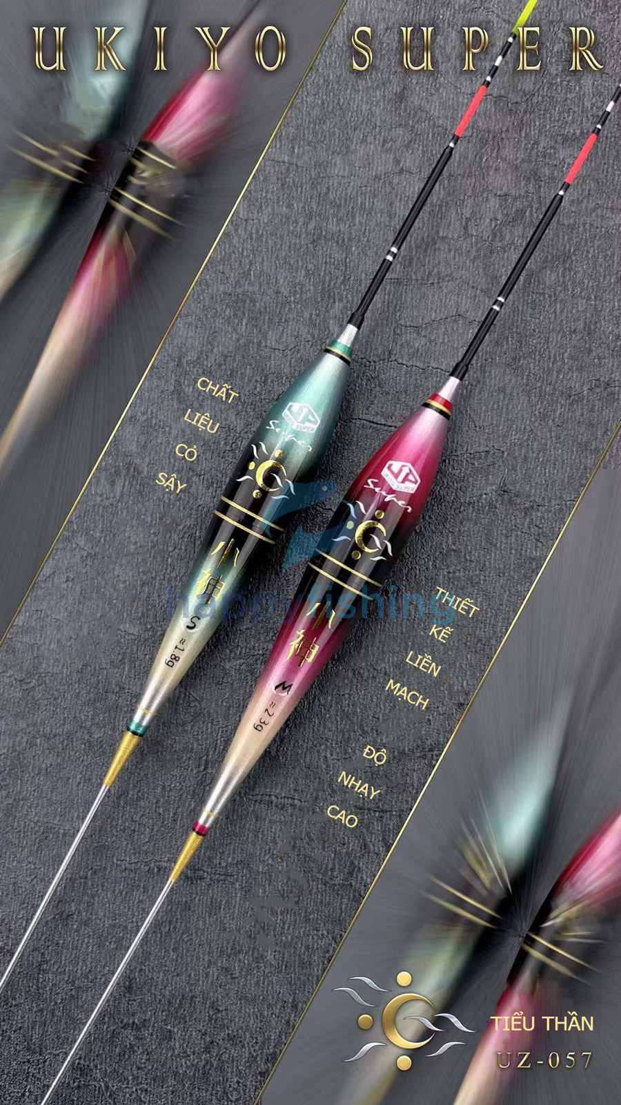 - Phao đèn câu đêm cao cấp UKIYO UZ-057 Tiểu Thần được thiết kế cho mục đích câu cá tổng hợp, câu cá chép với chiều dài 47cm và tải chỉ cho 2 kích thước S và M sau khi đã gắn pin lần lượt là 1.8g và 2.3g.