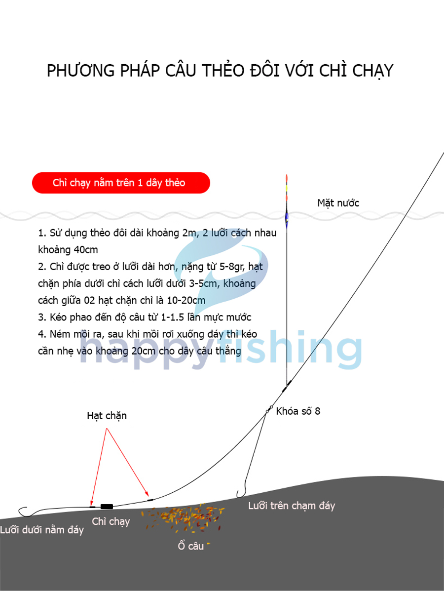 Ở phương pháp cân chỉ chạy này, người câu cá cần làm theo các bước sau: