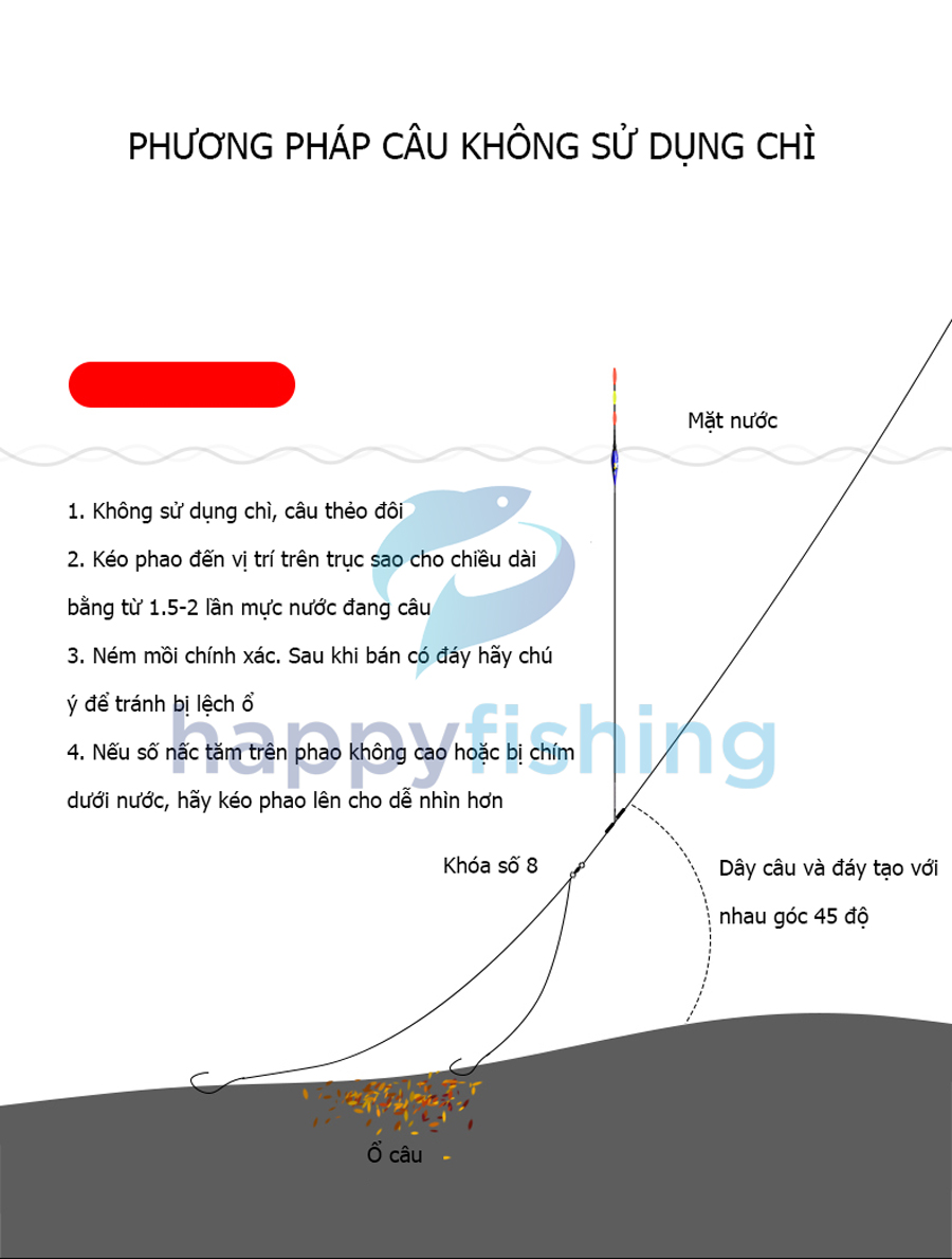 Lúc này, dây câu sẽ nghiêng 1 góc 45 độ với đáy và đạt điểm câu hoàn chỉnh để câu cá.
