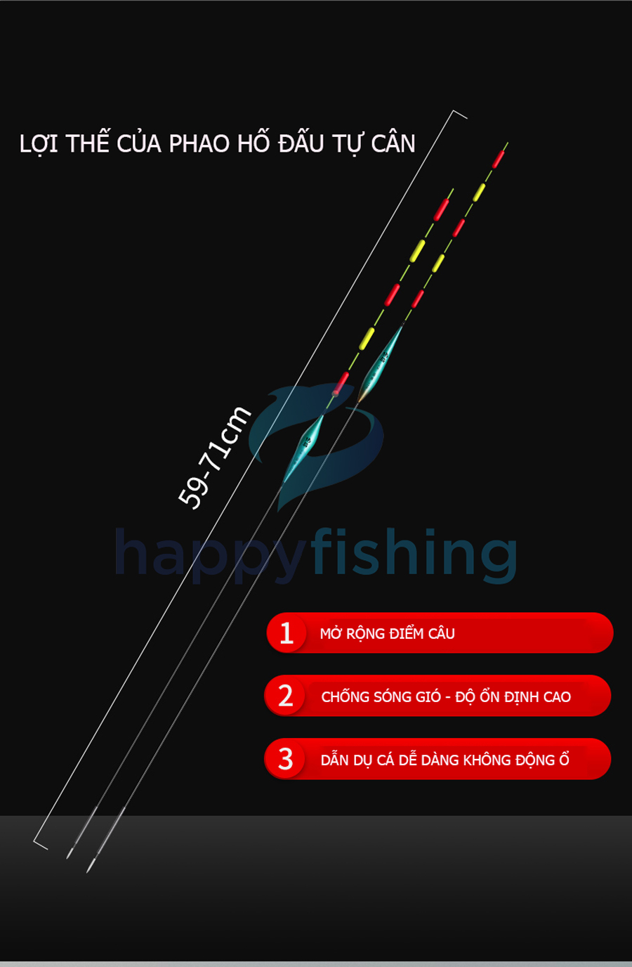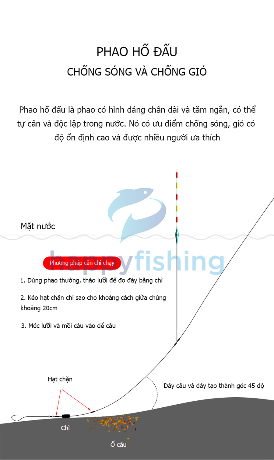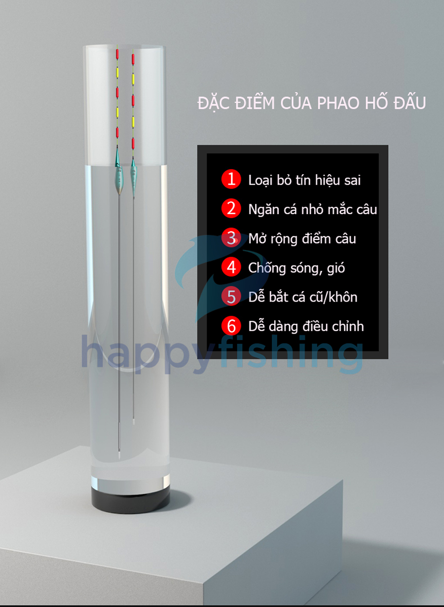 Phao câu Trắm đen là phao có hình dáng chân dài và tăm ngắn, có thể tự cân và độc lập trong nước. Phao hố đấu có ưu điểm chống sóng, gió và có độ ổn định cao nên được cần thủ rất yêu thích.