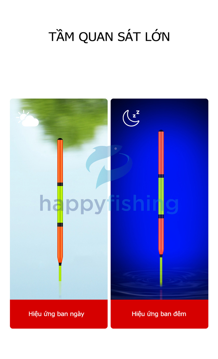 - Tăm phao sơn huỳnh quang bắt mắt có khả năng khuếch đại ánh sáng, cho tầm nhìn tối dưới nhiều điều kiện thời tiết