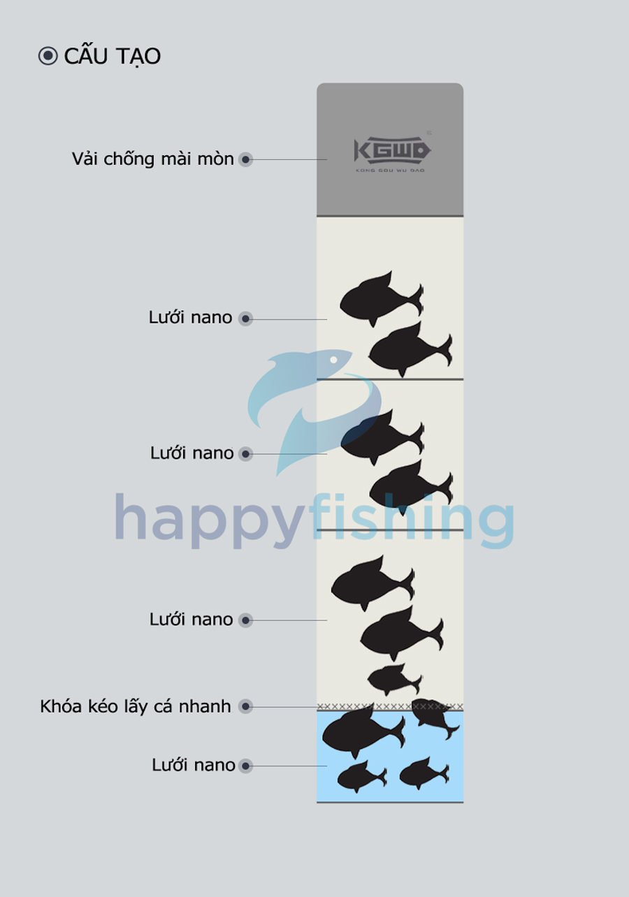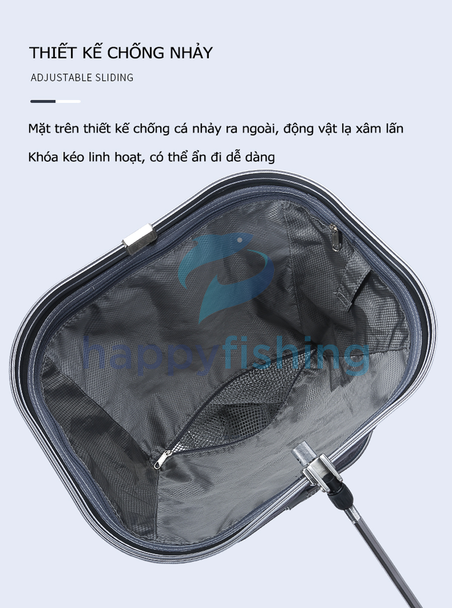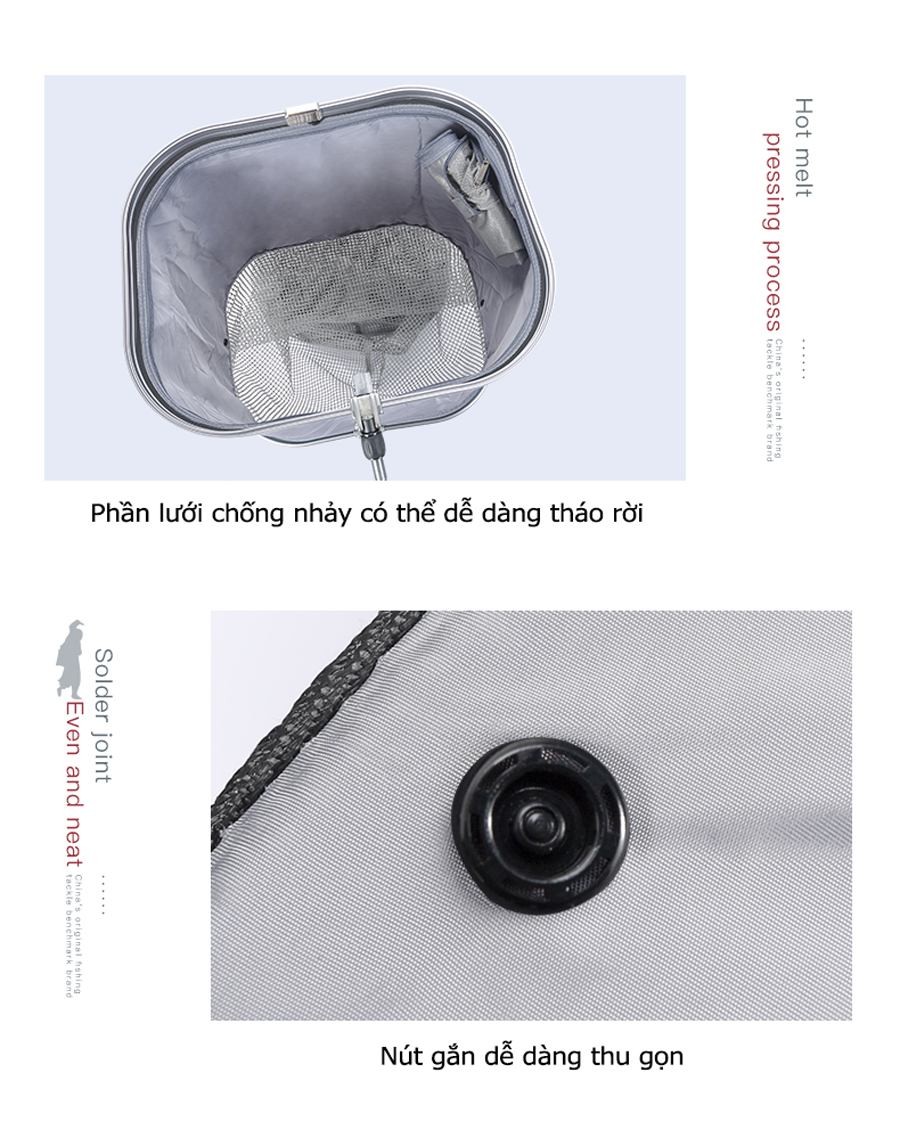 - Bản nâng cấp mới với 4 điểm nổi bật: Thanh trượt có thể điều chỉnh, lưới nano dày 02 lớp, tích hợp kèm túi đựng đa chức năng và đầu nối gạt cá tốc độ