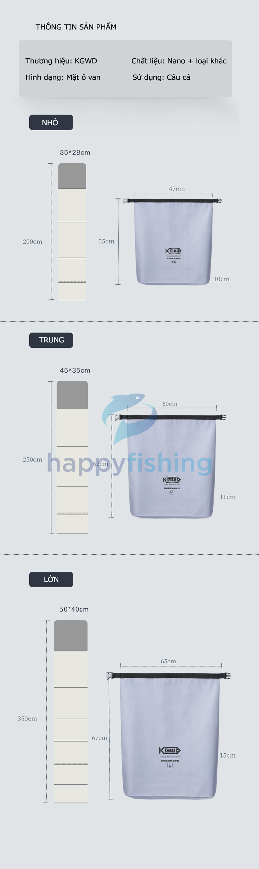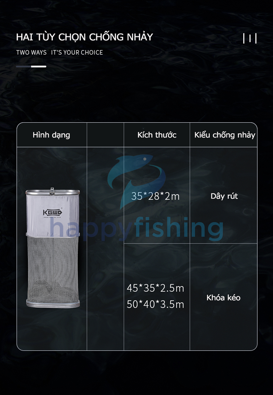 - Nhiều kích thước đáp ứng đầy đủ nhu cầu của Quý Cần thủ