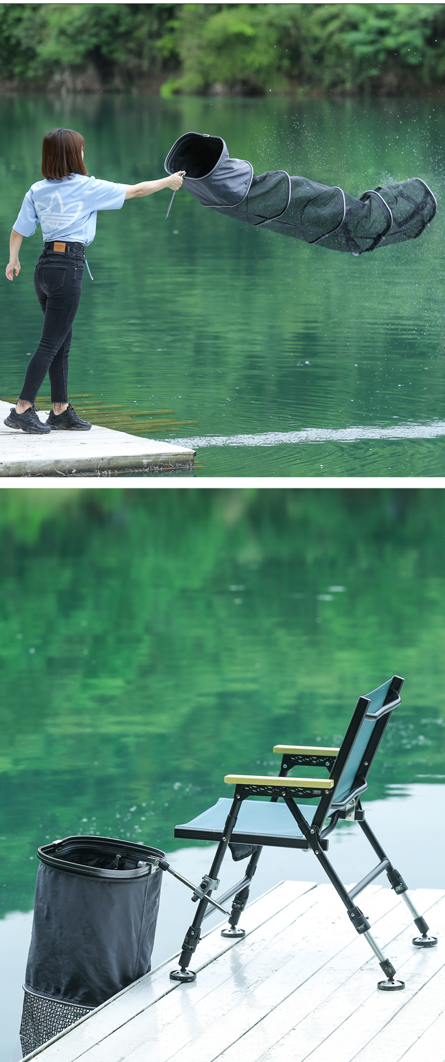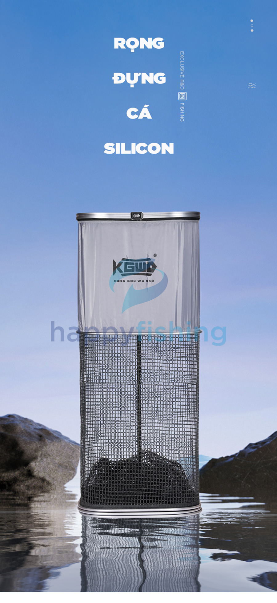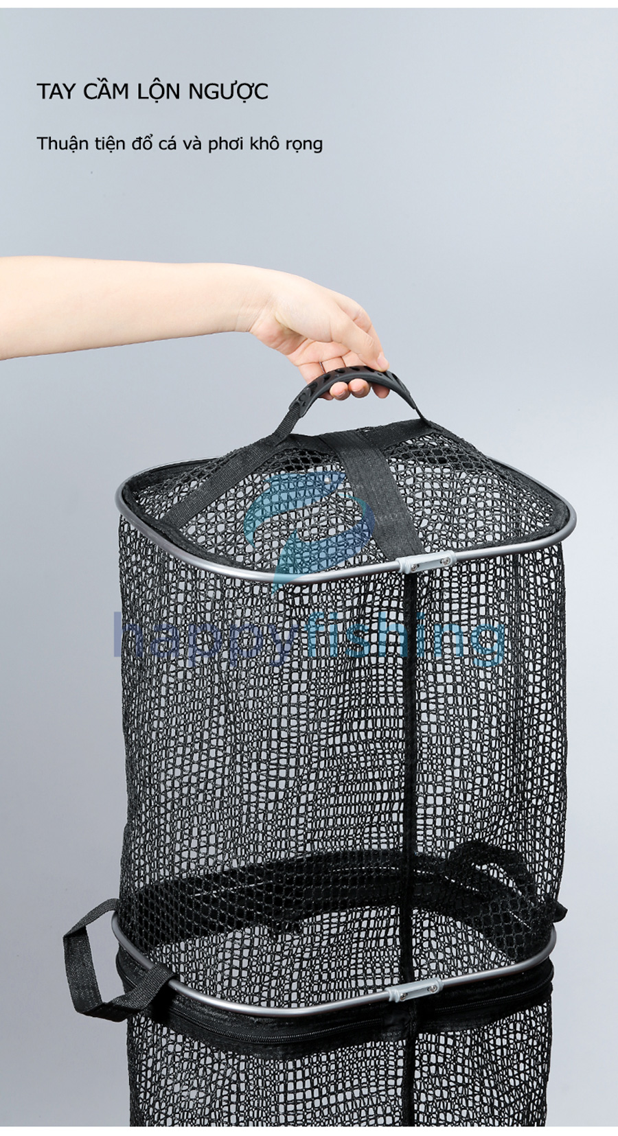 - Trên bề mặt rọng trang bị lưới chống cá nhảy, có thể tùy ý sử dụng và cất gọn dễ dàng