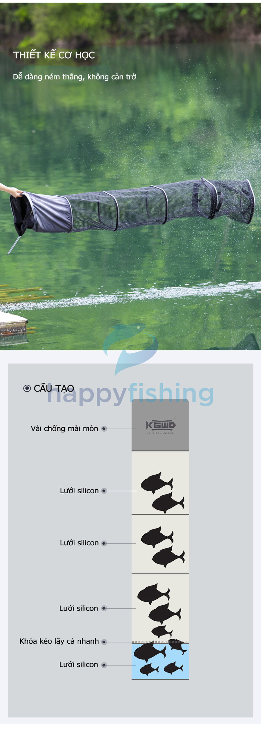 - Khoang cuối có thể tháo rời, dễ dàng lấy cá