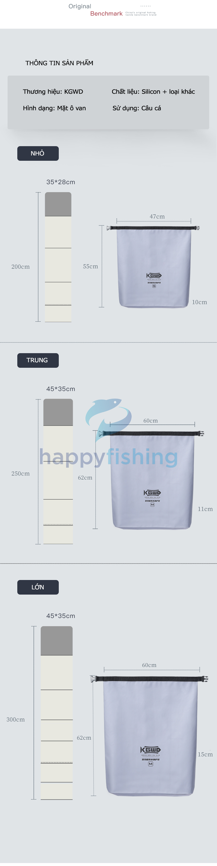 - Nhiều kích thước đáp ứng đầy đủ nhu cầu của Quý Cần thủ