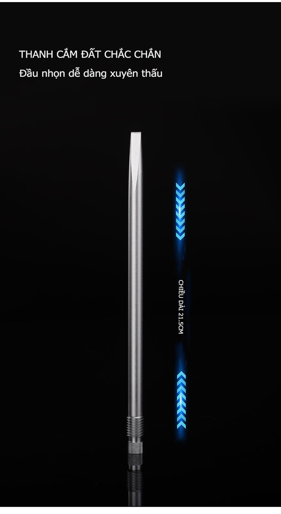 - Sản phẩm có 01 phiên bản: Thanh ngắn thích hợp sử dụng cho thùng, ghế câu và thanh dài có thể cắm đất để sử dụng