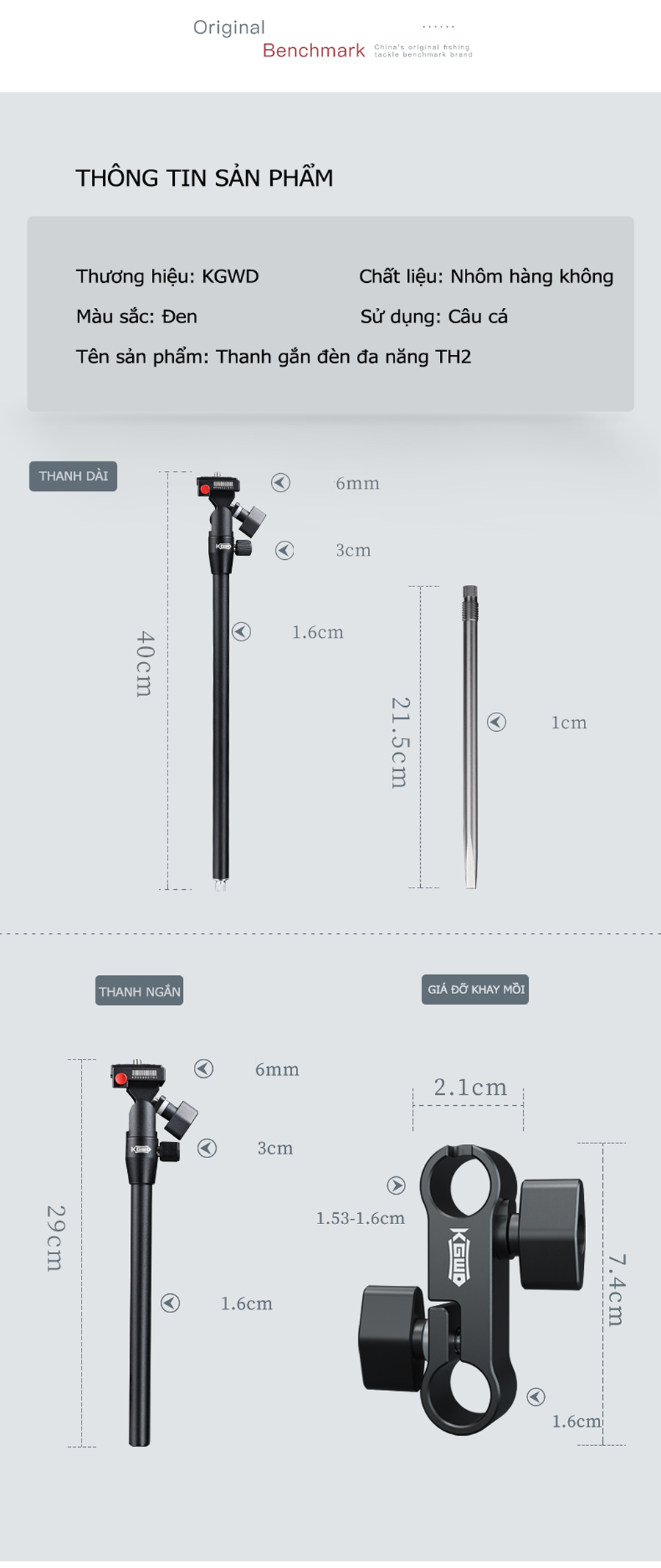 - Sản phẩm có thể kế hợp sử dụng cùng giá đỡ khay mồi đa năng tạo nên combo ngọn nhẹ, có thể cùng lúc sử dụng đèn soi phao và khay mồi trên cùng 01 thanh duy nhất