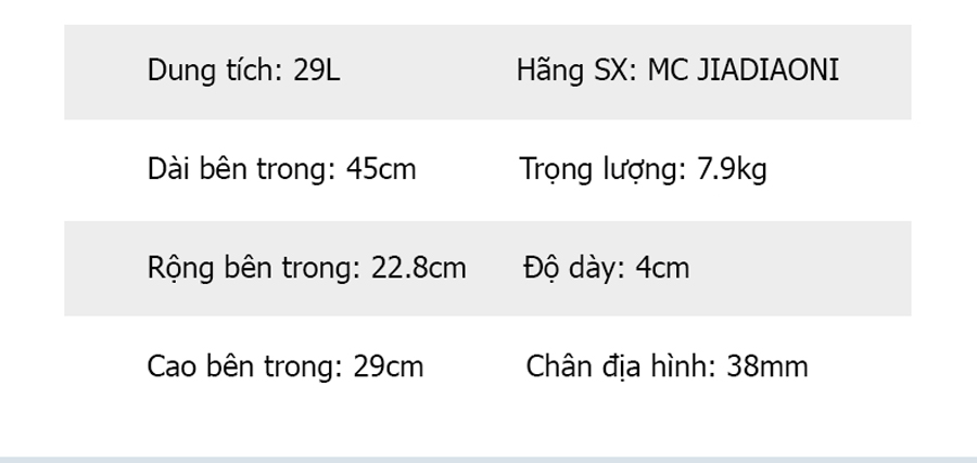 - Dung tích 29L cơ bản, dễ dàng mang theo mọi lúc mọi nơi