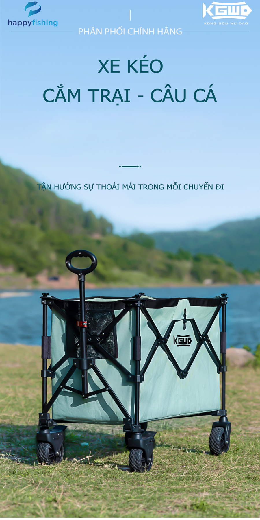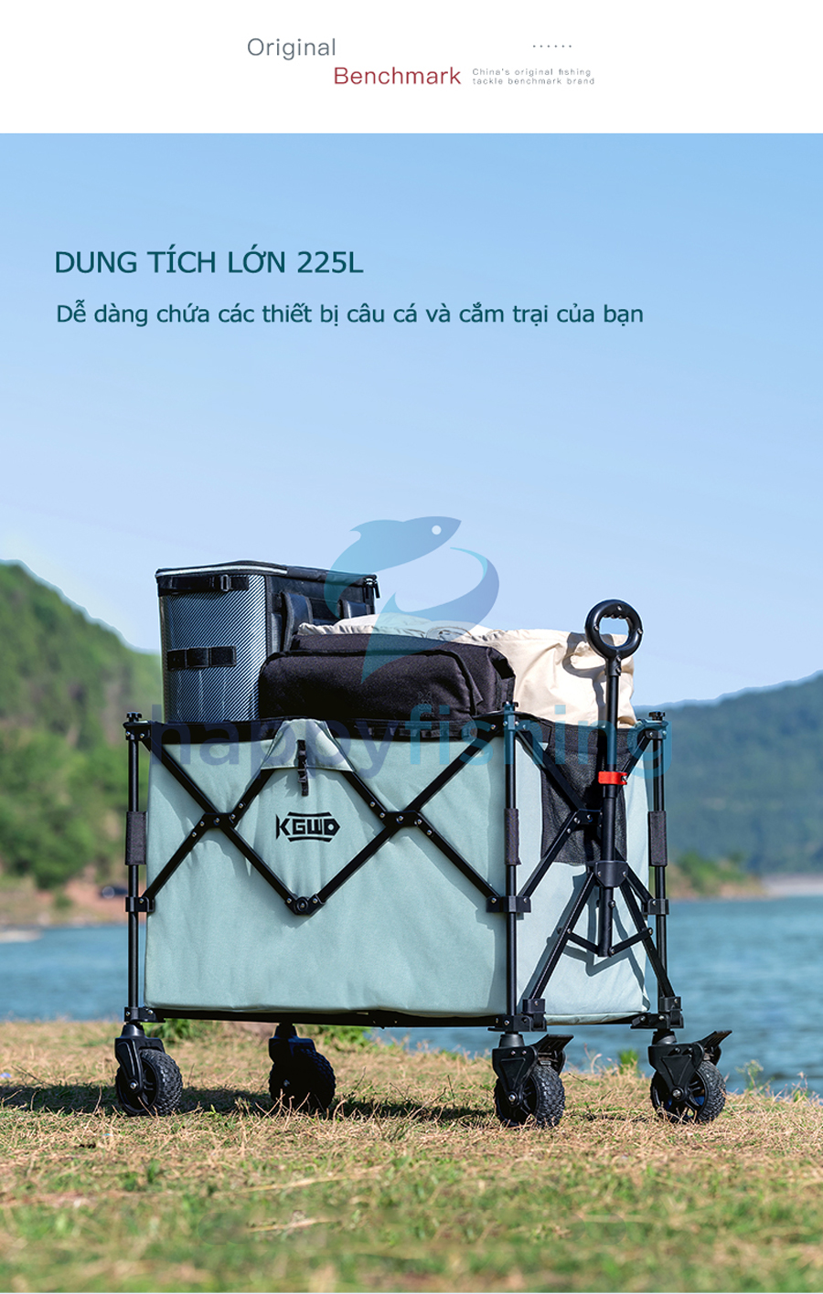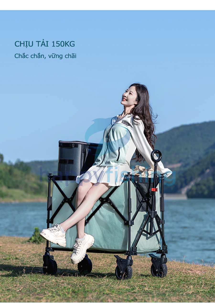 - Xe kéo câu cá, xe kéo dã ngoại được thiết kế với dung tích lớn 225L và khả năng chịu tải lên tới 150kg sẵn sàng chứa mọi đồ dùng cần thiết cho mỗi chuyến đi câu, dã ngoại của bạn