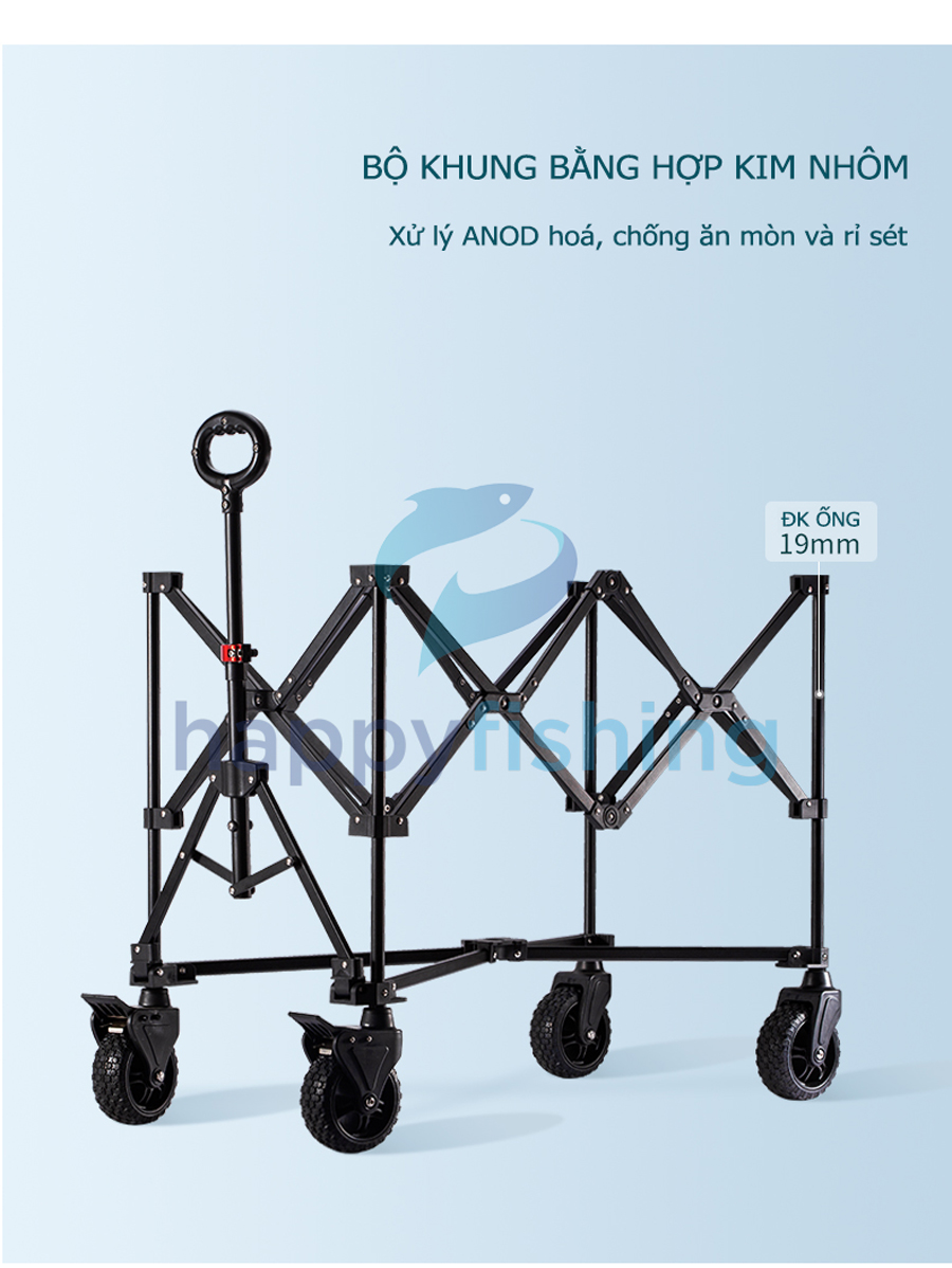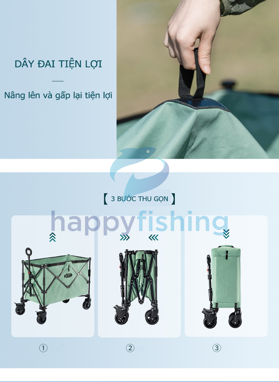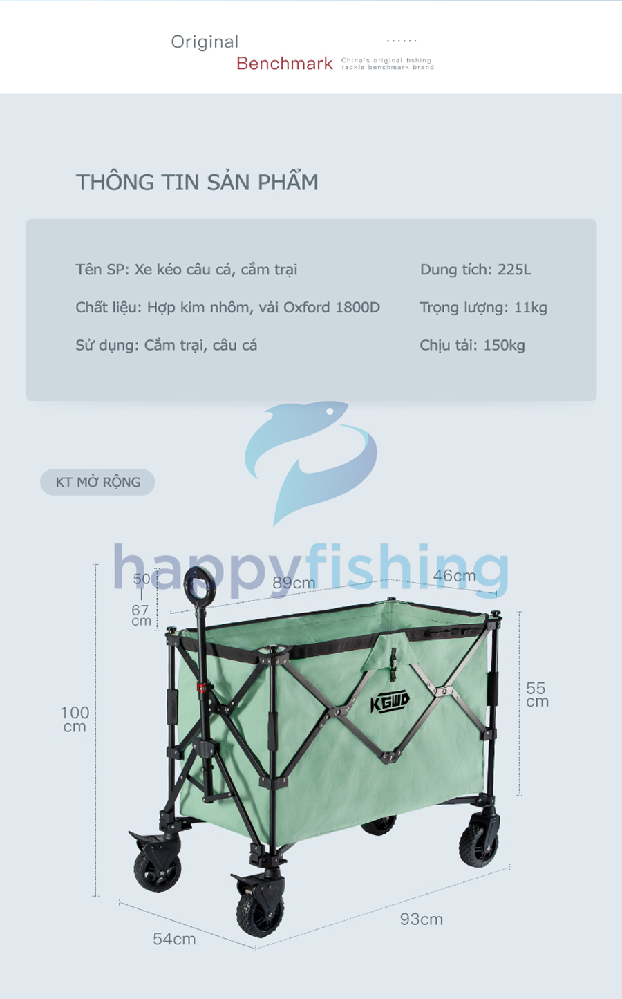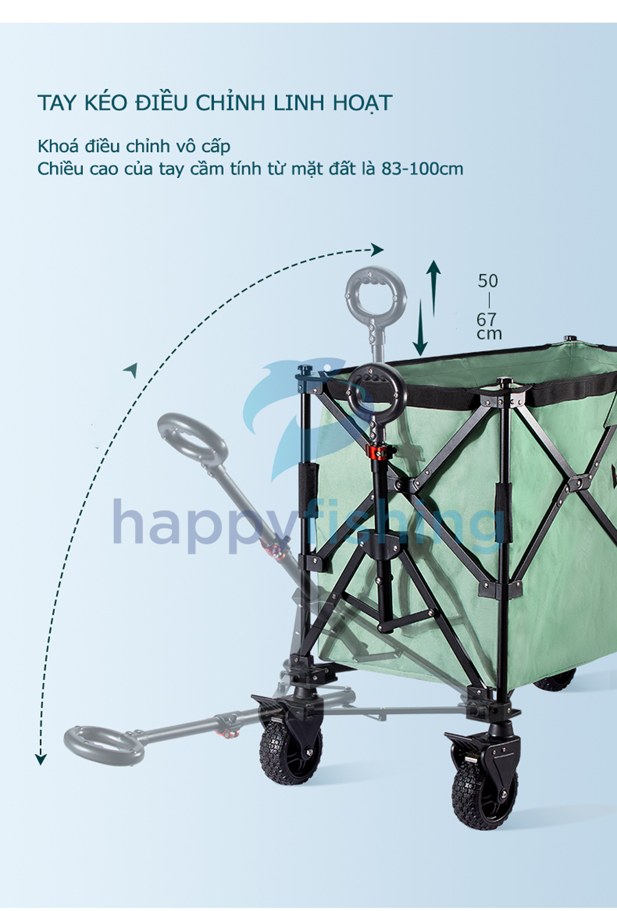 - Xe kéo câu cá, xe kéo dã ngoại được thiết kế với dung tích lớn 225L và khả năng chịu tải lên tới 150kg sẵn sàng chứa mọi đồ dùng cần thiết cho mỗi chuyến đi câu, dã ngoại của bạn