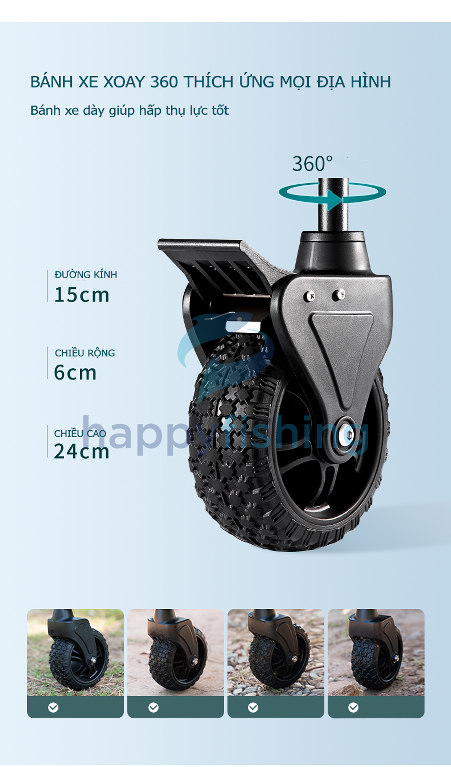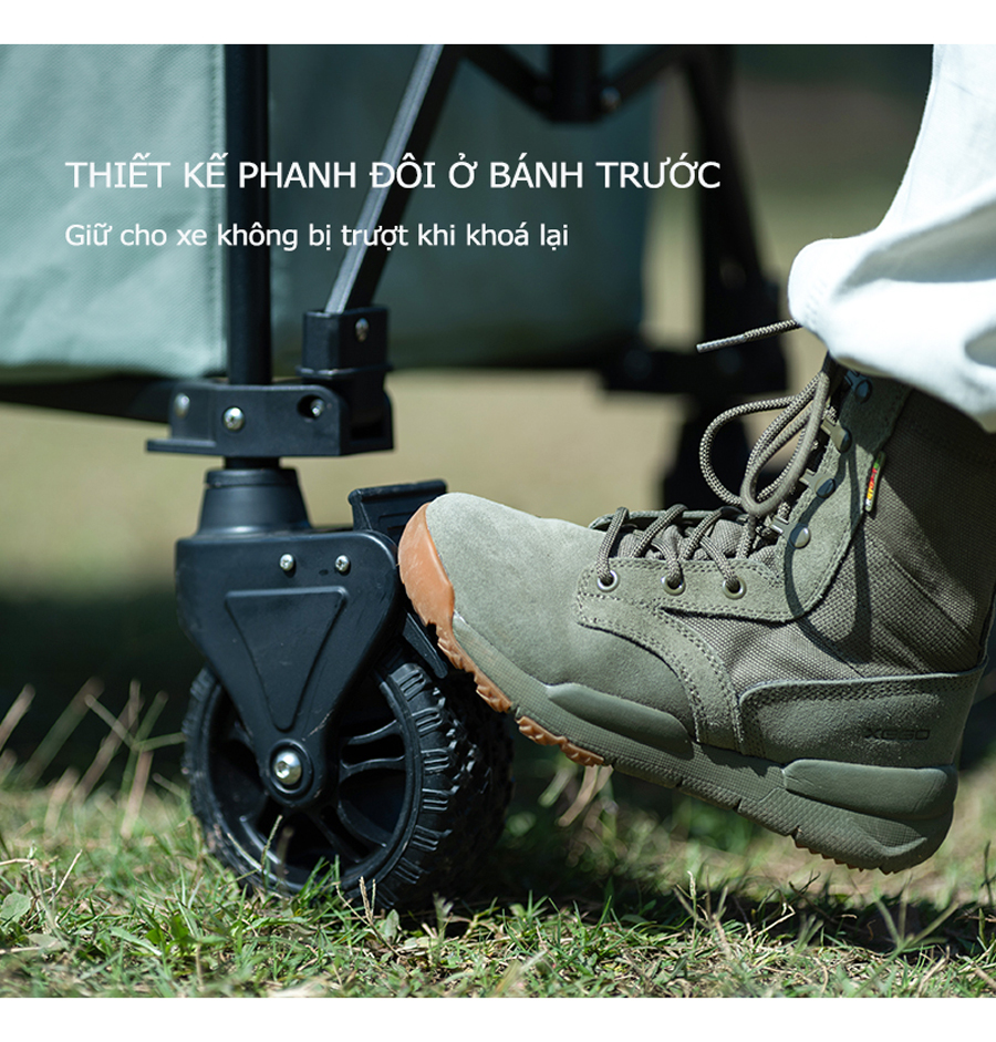 - Bánh xe kích thước lớn, xoay 360 dễ dàng cho khả năng vận hành hiệu quả trên nhiều bề mặt. 02 Phanh ở bánh trước giúp xe cố định khi cần thiết