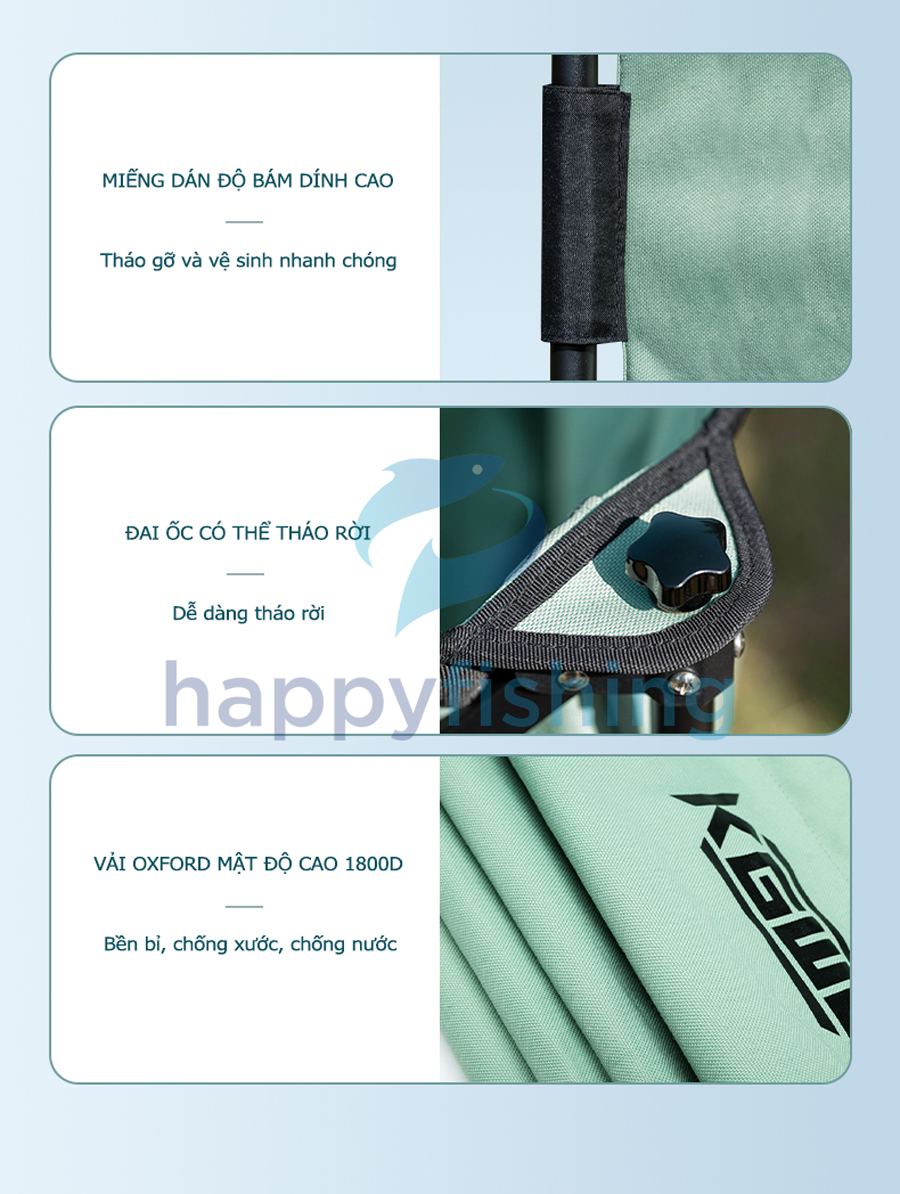 - Phần vải Oxford 1800D cho khả năng chống mài mòn, chống xước cao và dễ dàng vệ sinh, có thể tháo rời nhanh chóng để giặt rửa